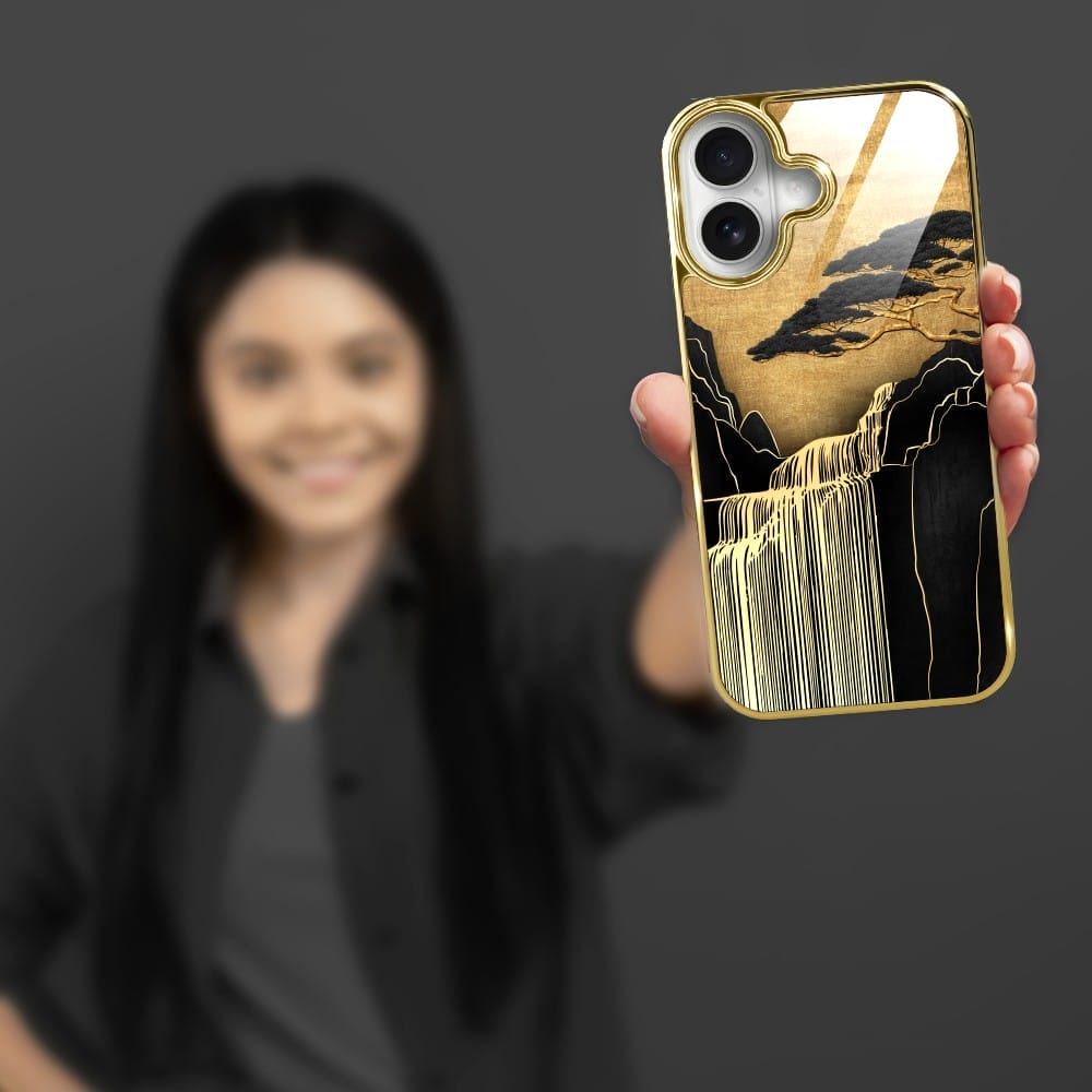 Etui do iPhone 16 Plus IBIZU Elite Glass z MagSafe Magia Azji, Złoty wodospad, złote
