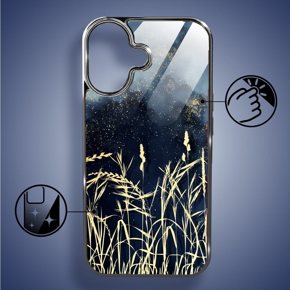 Etui do iPhone 16 Plus IBIZU Elite Glass z MagSafe Kwiaty, Złote trawy o zmierzchu, czarne