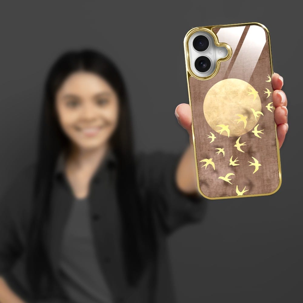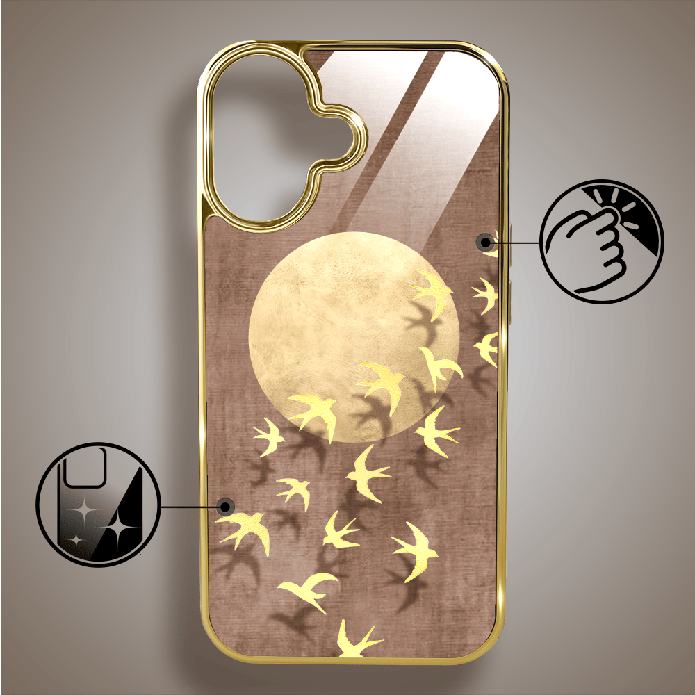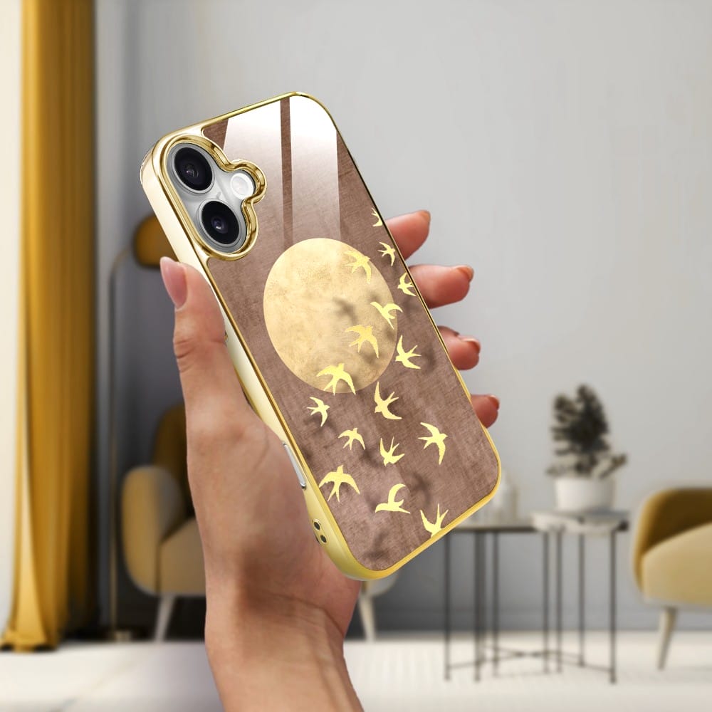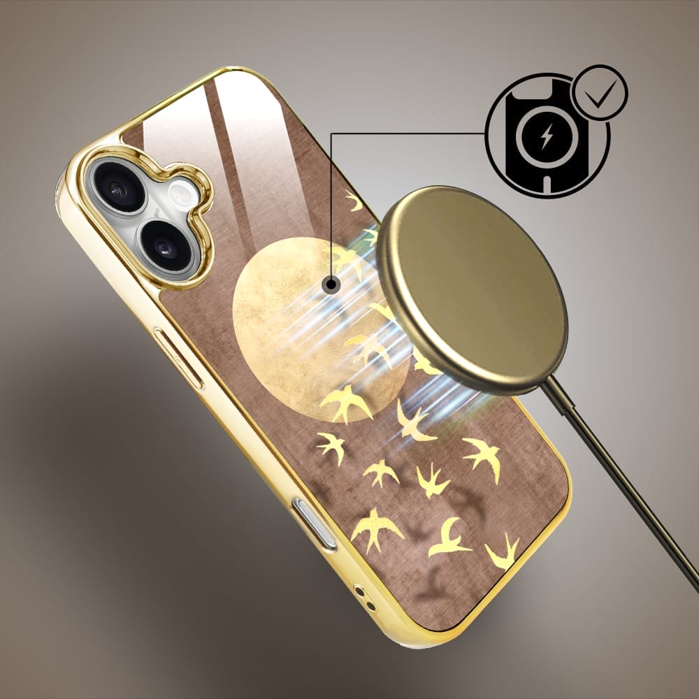 Etui do iPhone 16 Plus IBIZU Elite Glass z MagSafe Magia Azji, Taniec jaskółek, złote