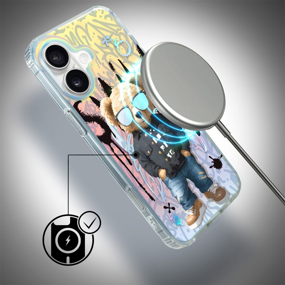 Etui do iPhone 16 Plus IBIZU California Sunset z MagSafe, zmieniające kolor, Graffiti Boy, artystyczny miś