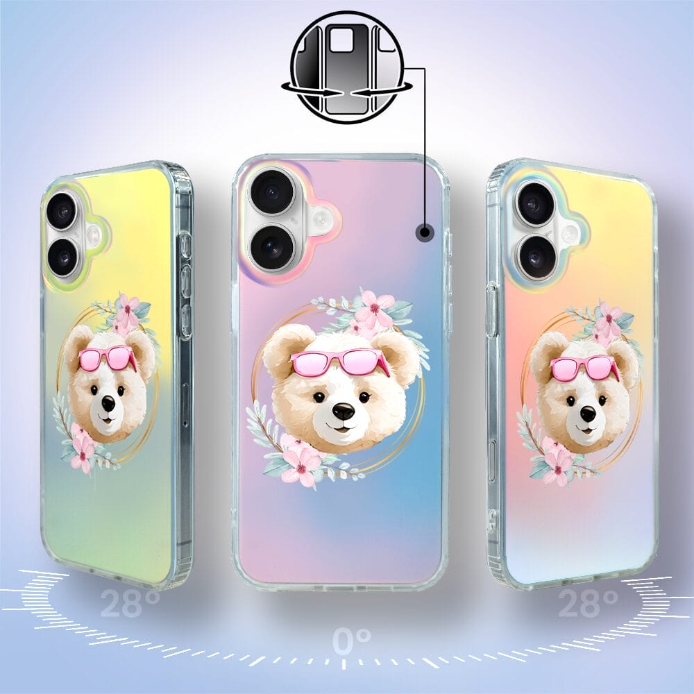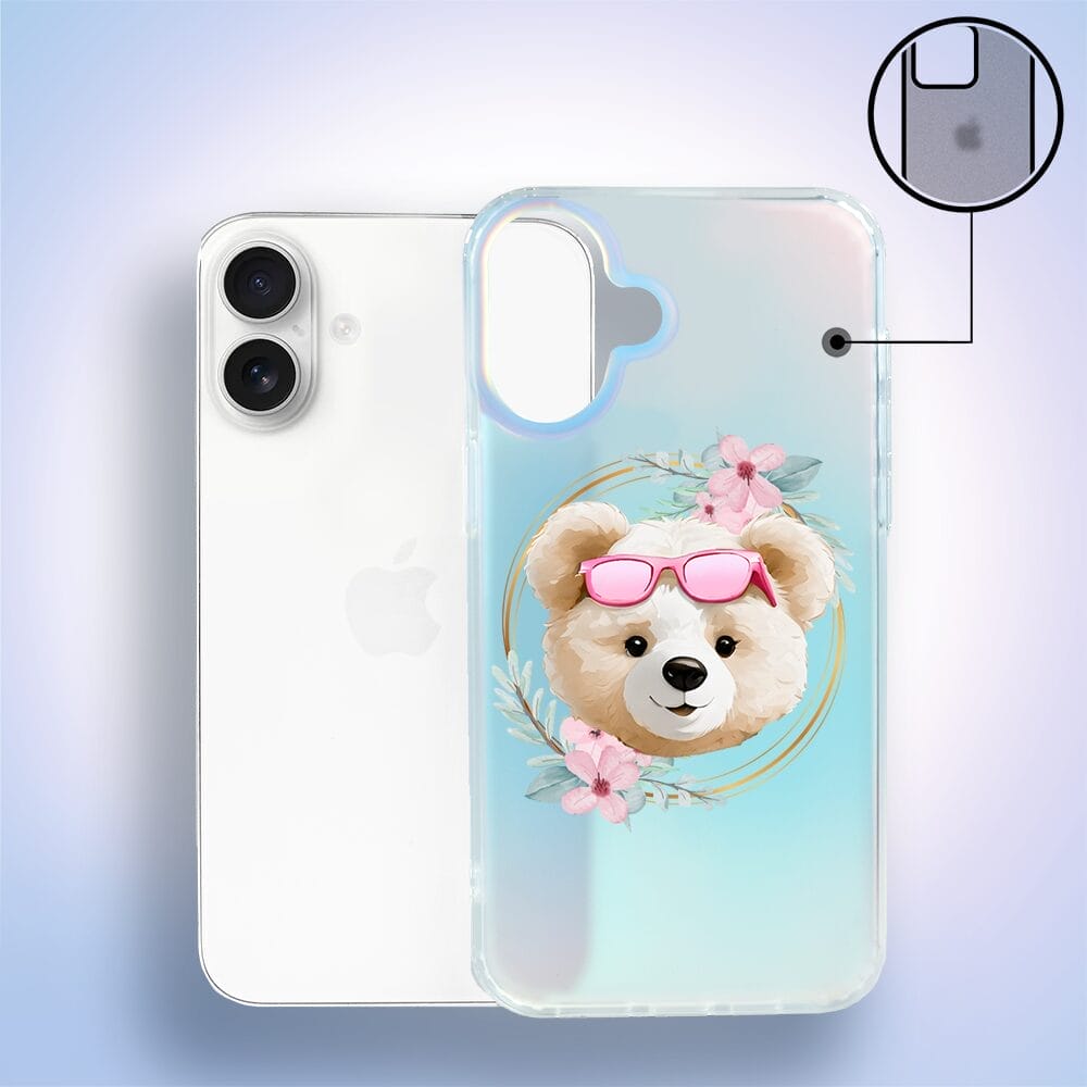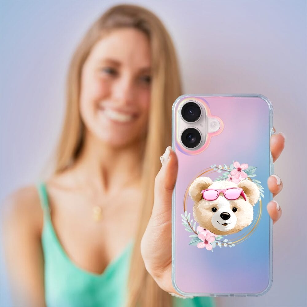 Etui do iPhone 16 Plus IBIZU California Sunset, zmieniające kolor, Flower Queen, miś z kwiatami