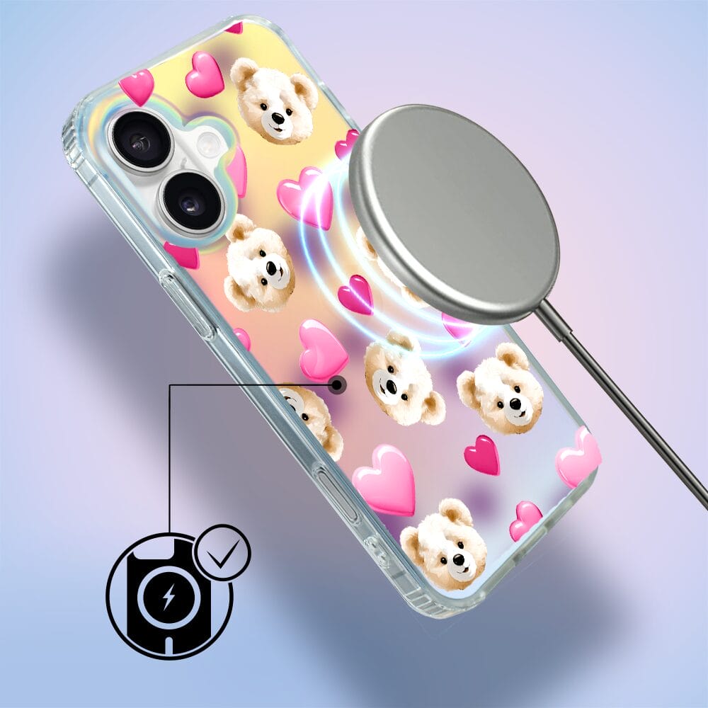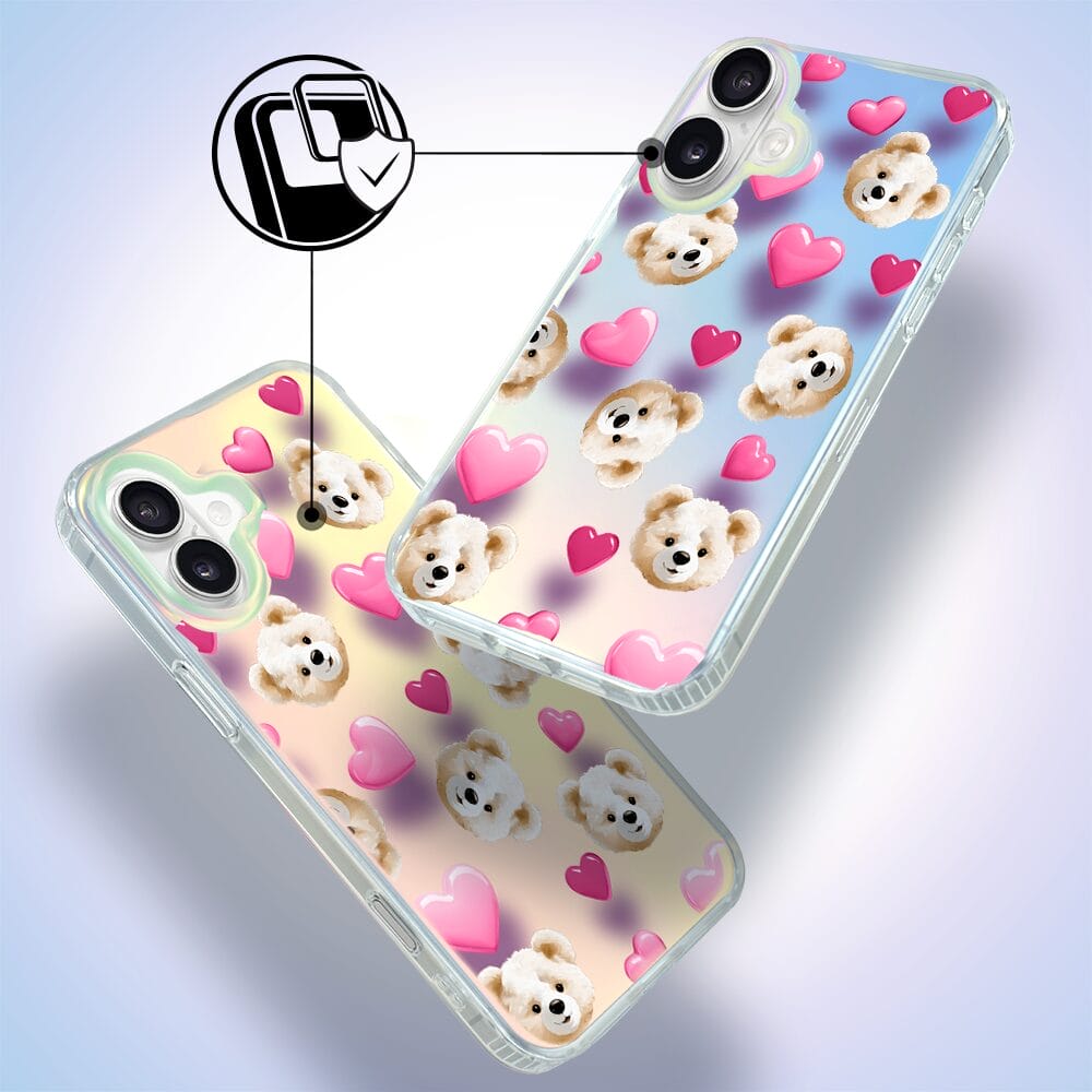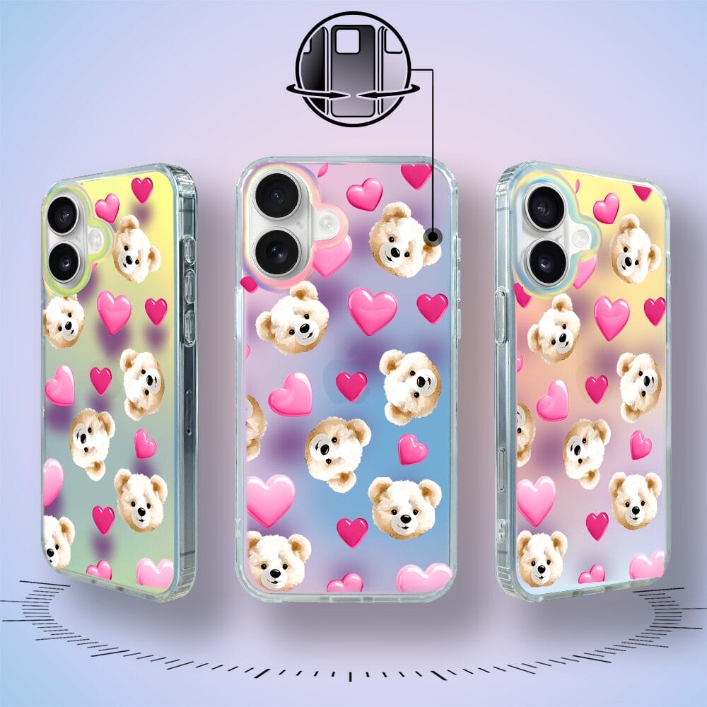 Etui do iPhone 16 Plus IBIZU California Sunset zmieniające kolor, Love Mood, miś i serduszka