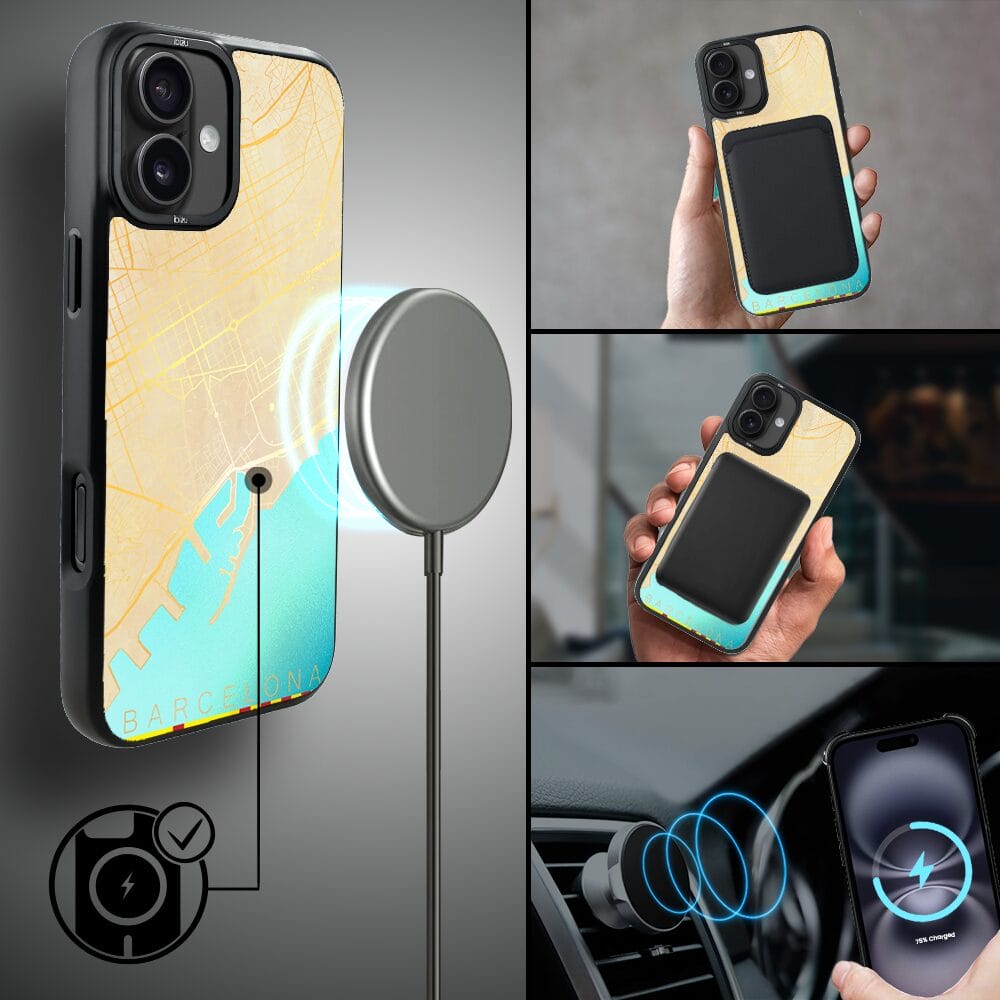Etui do iPhone 16 Plus IBIZU DropGuard Matt z MagSafe, Mapy Świata, Barcelona