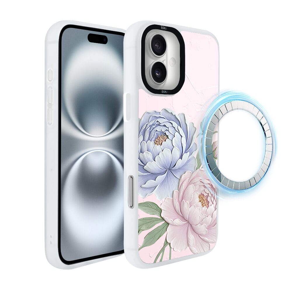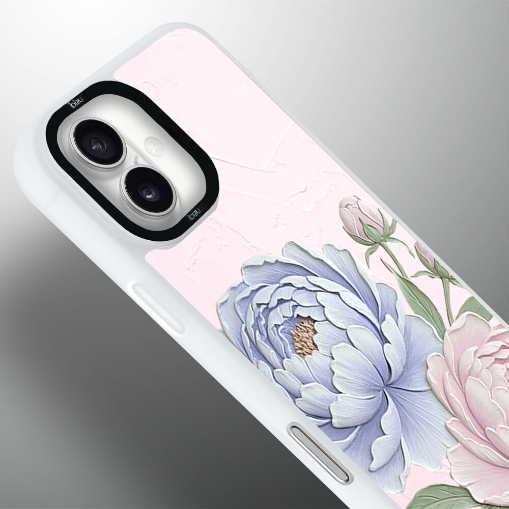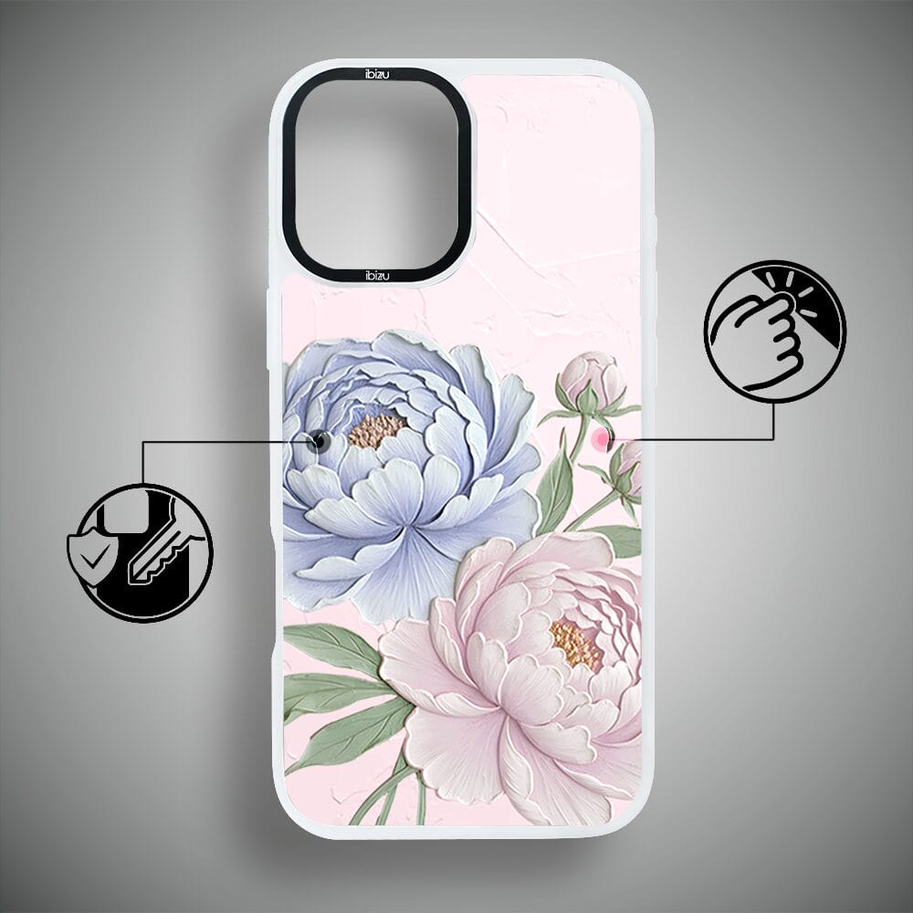 Etui do iPhone 16 Plus IBIZU DropGuard Matt z MagSafe, Relief Garden, Piwoniowy róż, białe