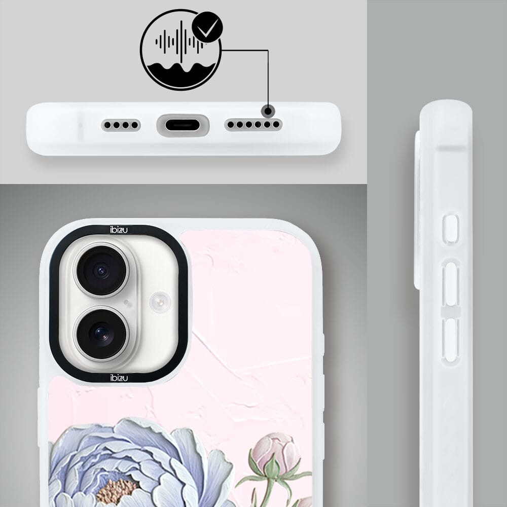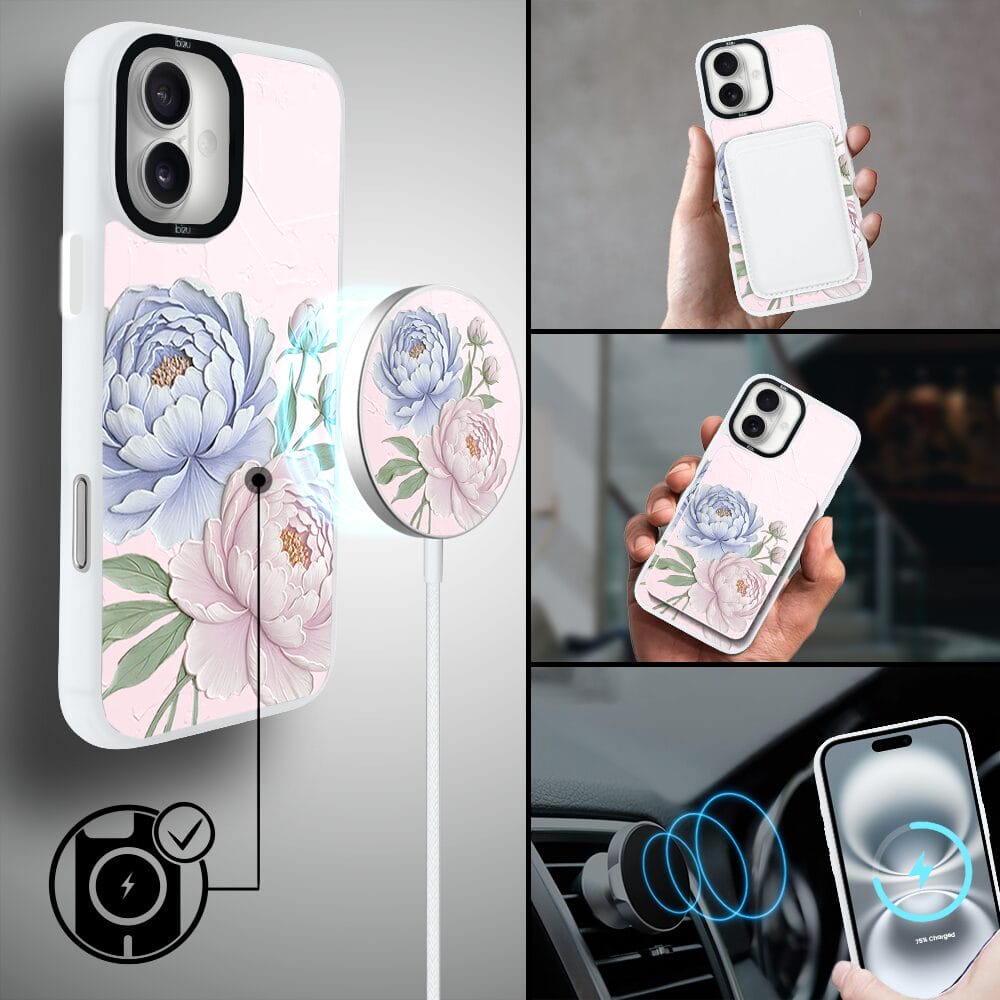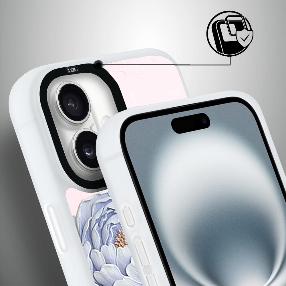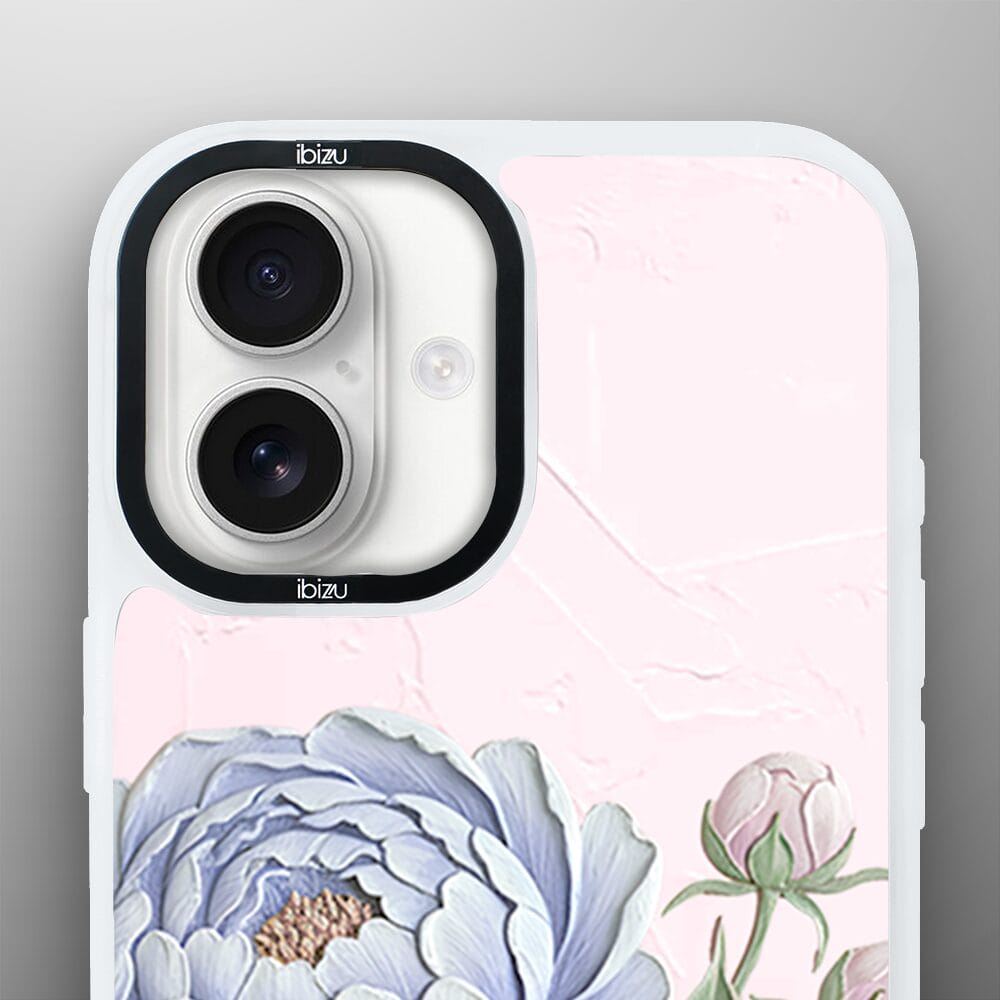 Etui do iPhone 16 Plus IBIZU DropGuard Matt z MagSafe, Relief Garden, Piwoniowy róż, białe