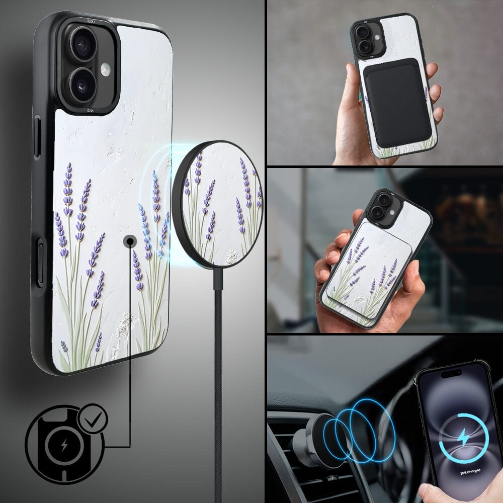 Etui do iPhone 16 Plus IBIZU DropGuard Matt z MagSafe, Relief Garden, Prowansalska lawenda