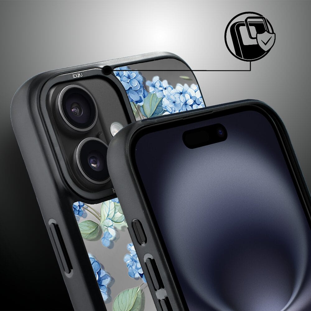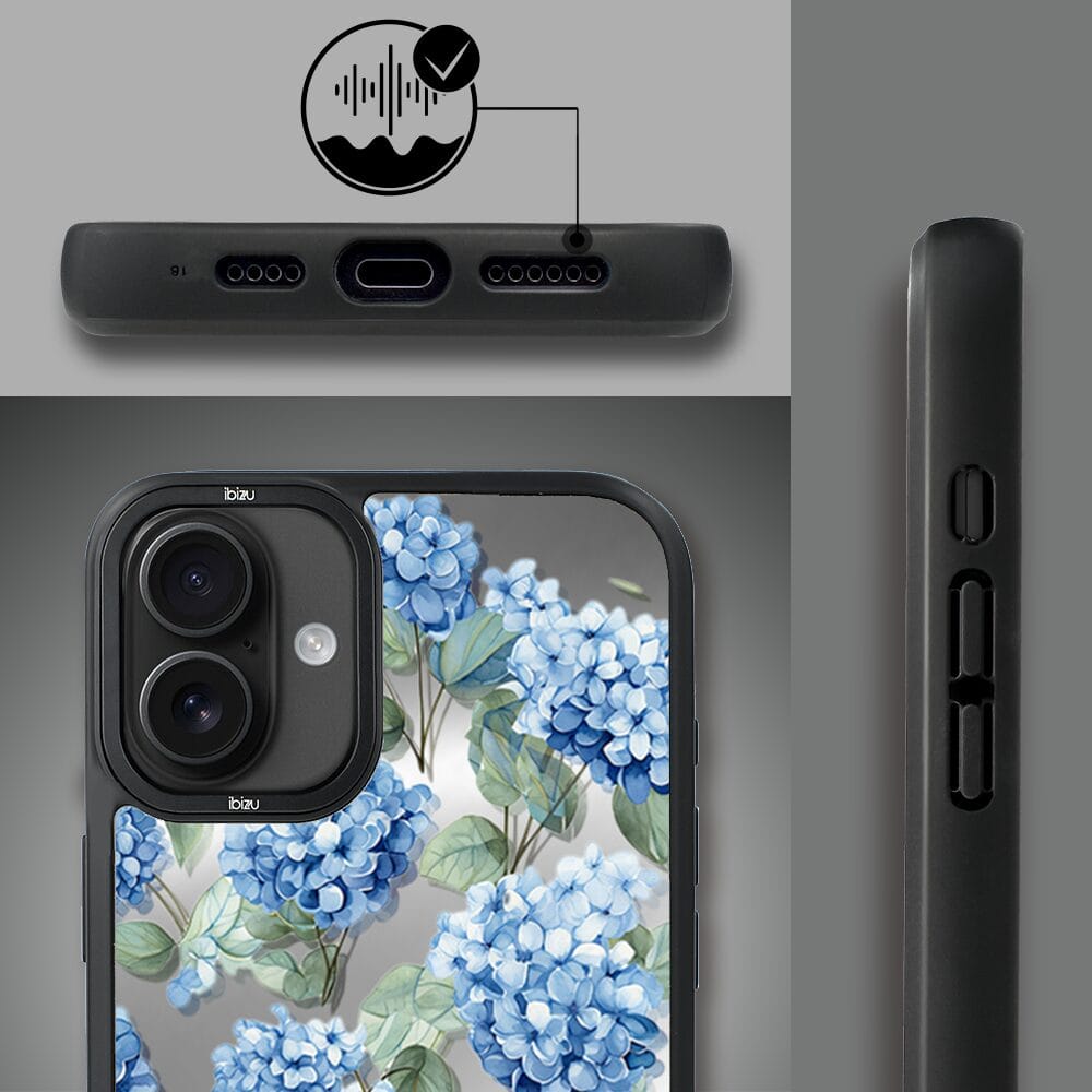 Etui do iPhone 16 Plus IBIZU DropGuard Matt z MagSafe, Relief Garden, Szafirowa hortensja