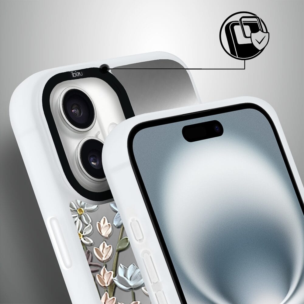 Etui do iPhone 16 Plus IBIZU DropGuard Matt z MagSafe, Relief Garden, Wiosenna łąka, białe