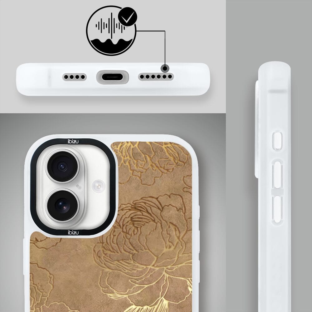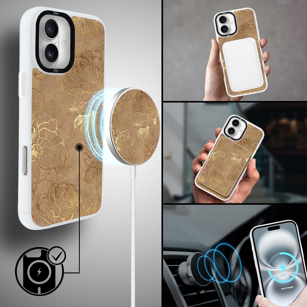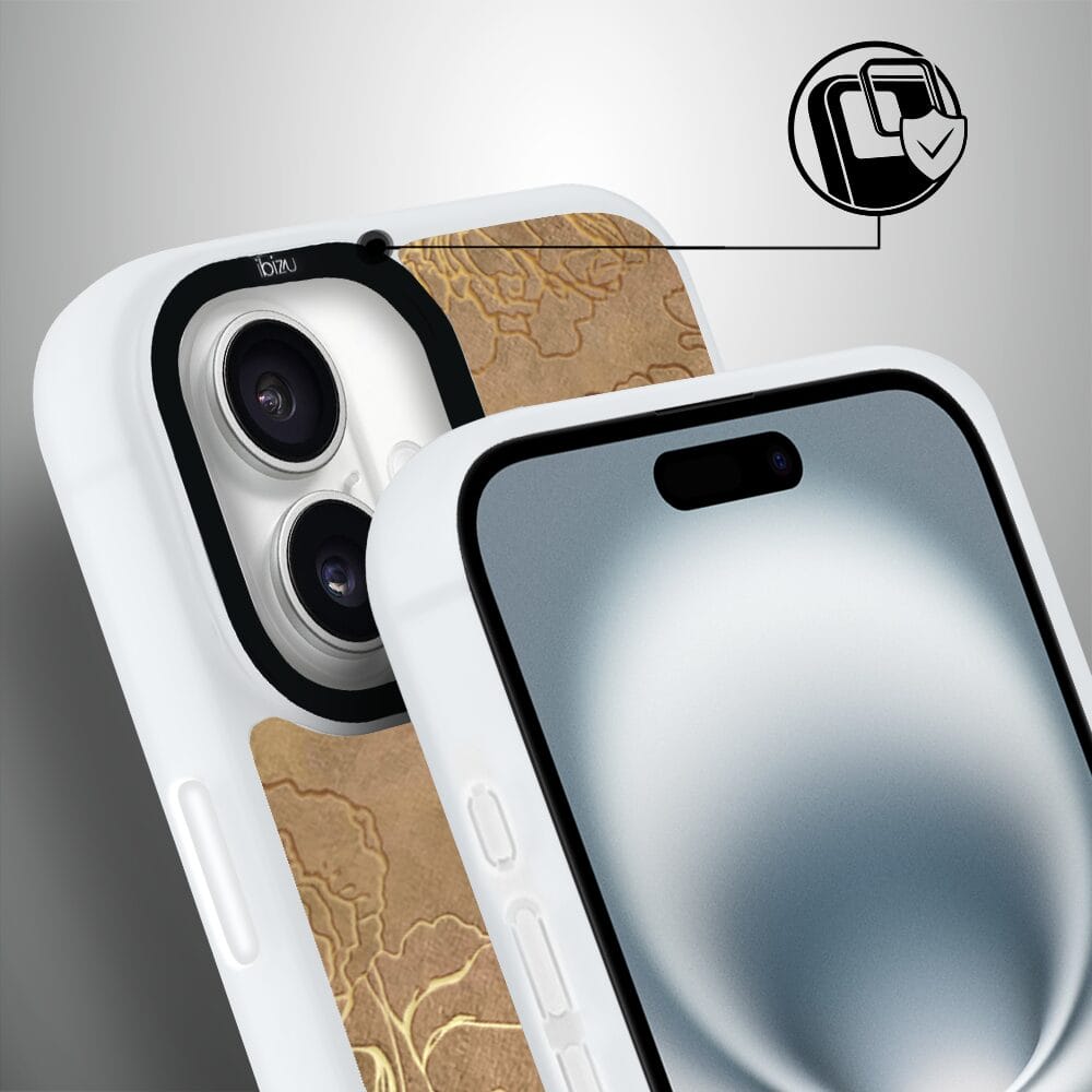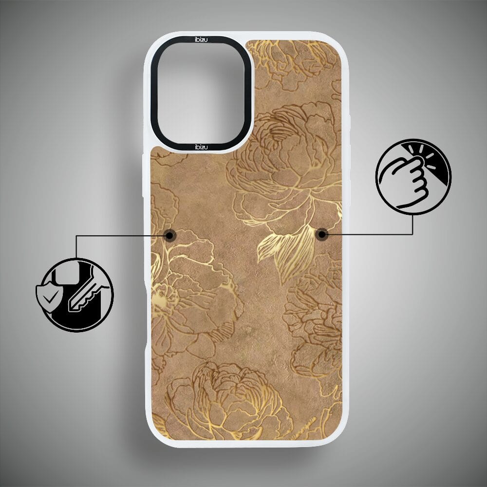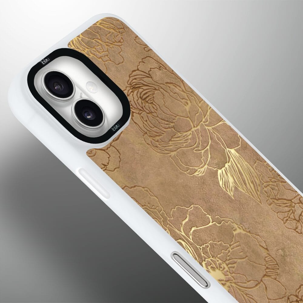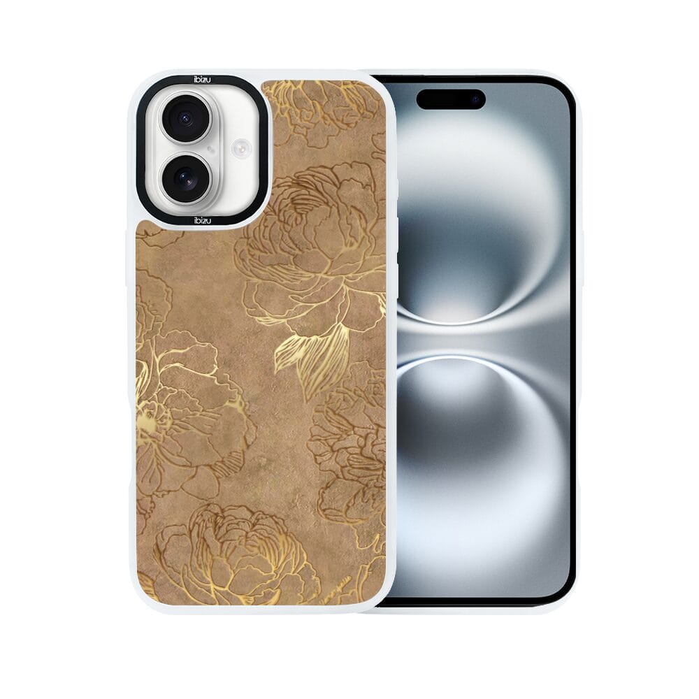 Etui do iPhone 16 Plus IBIZU DropGuard Matt z MagSafe, Relief Garden, Złote piwonie, białe