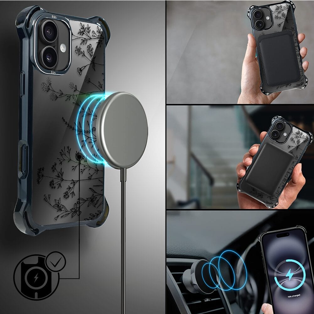 Etui do iPhone 16 Plus IBIZU DropGuard Ultra z MagSafe, Midnight, Dotyk kwiatów