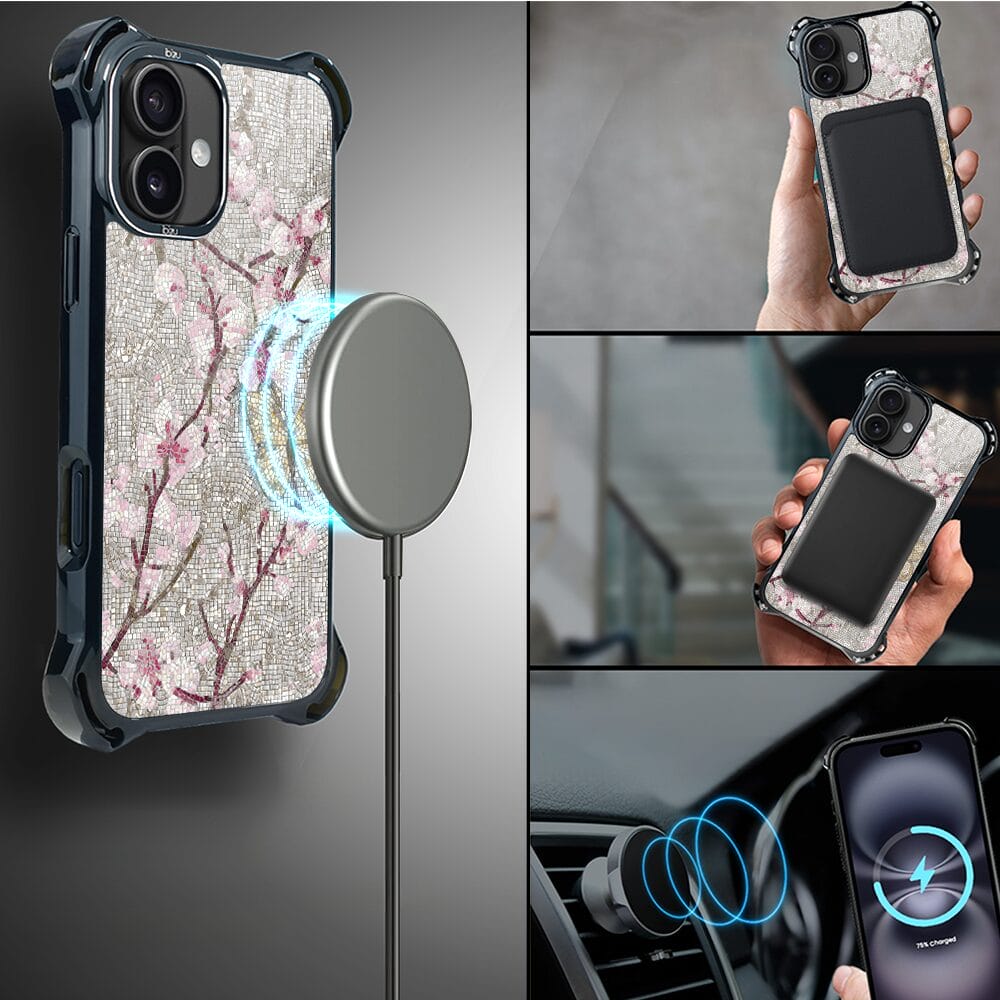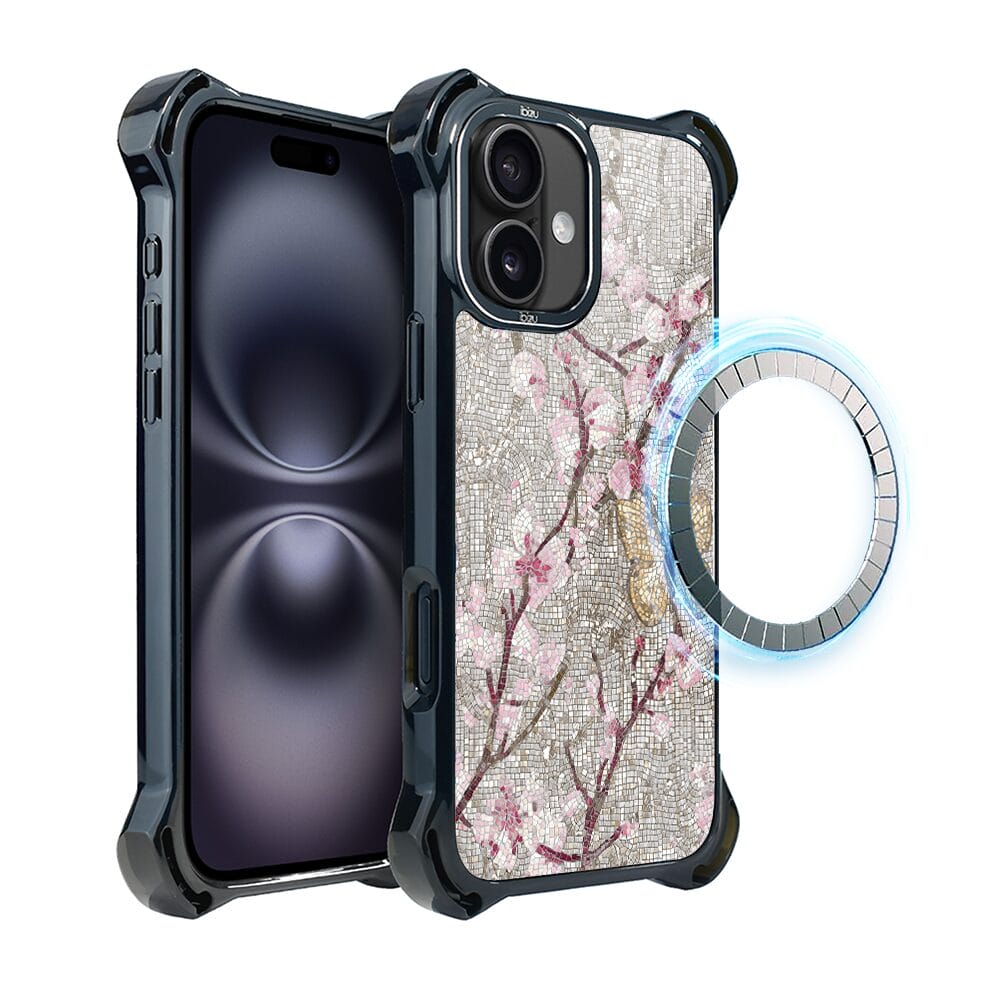 Etui do iPhone 16 Plus IBIZU DropGuard Ultra z MagSafe, Modern Classics, Mozaika kwitnącej wiśni