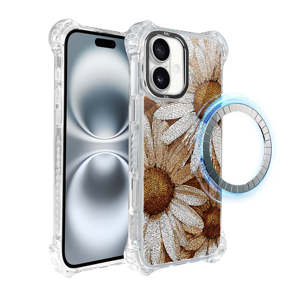 Etui do iPhone 16 Plus IBIZU DropGuard Ultra z MagSafe, Modern Classics, Mozaika rumianków
