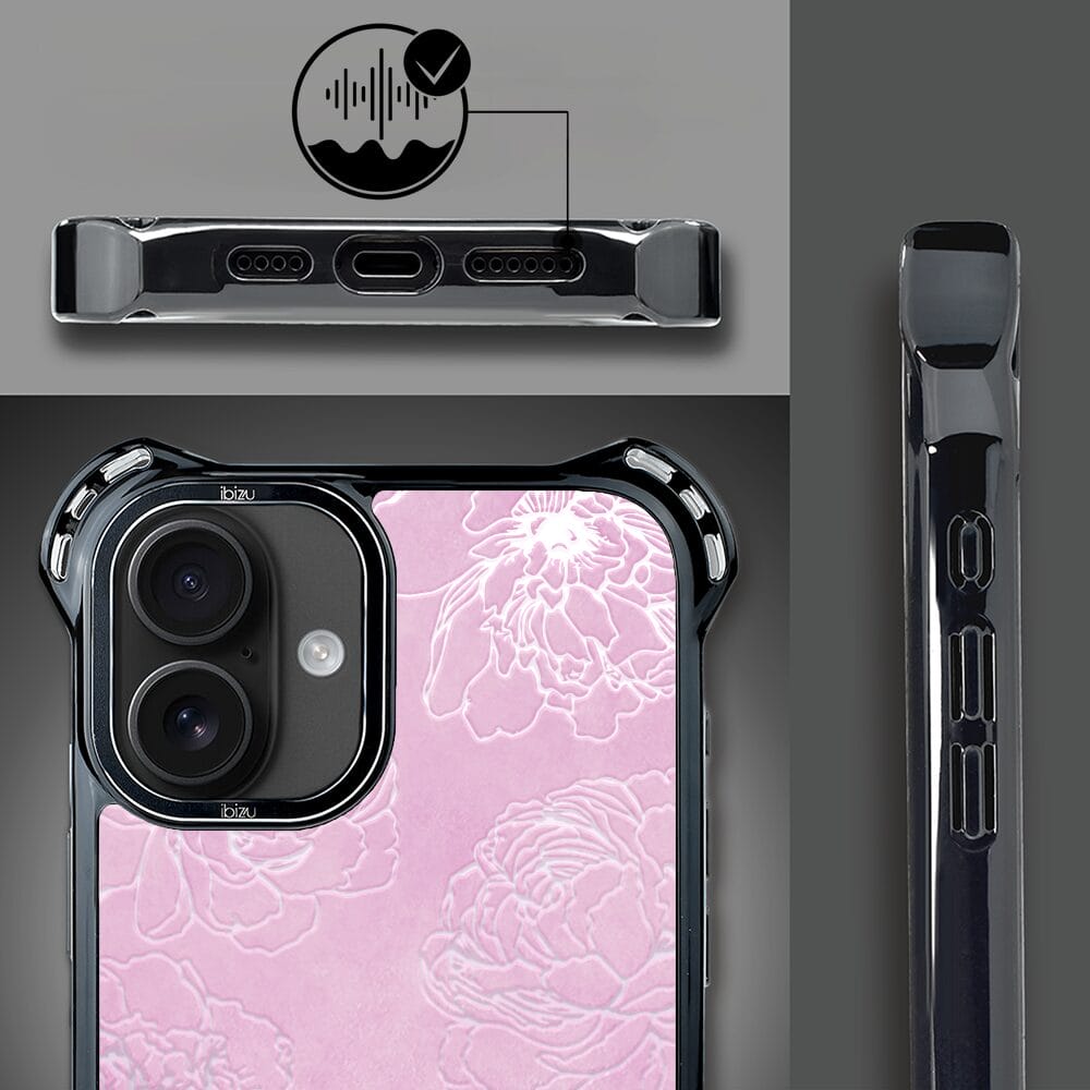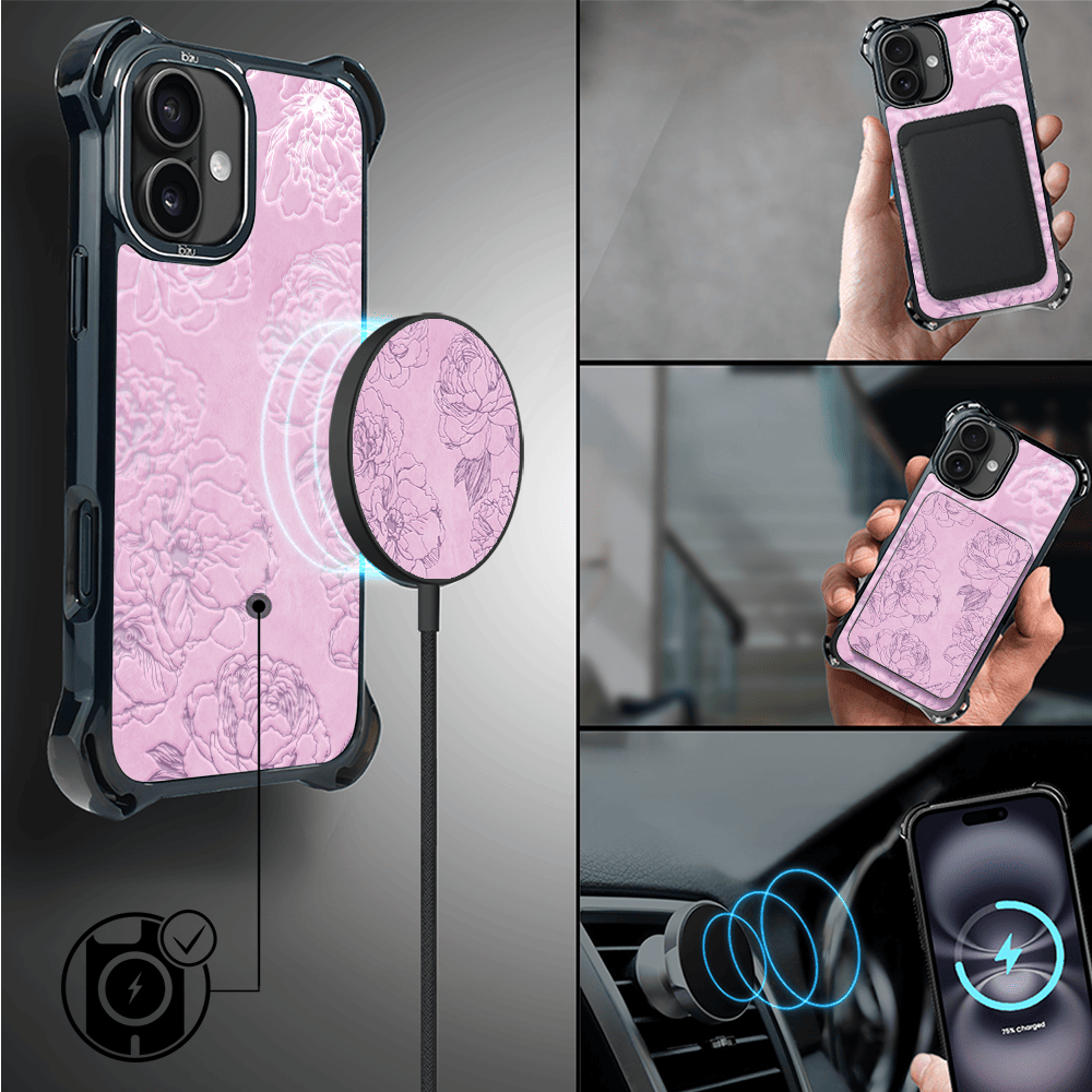 Etui do iPhone 16 Plus IBIZU DropGuard Ultra z MagSafe, Relief Garden, Różowe piwonie