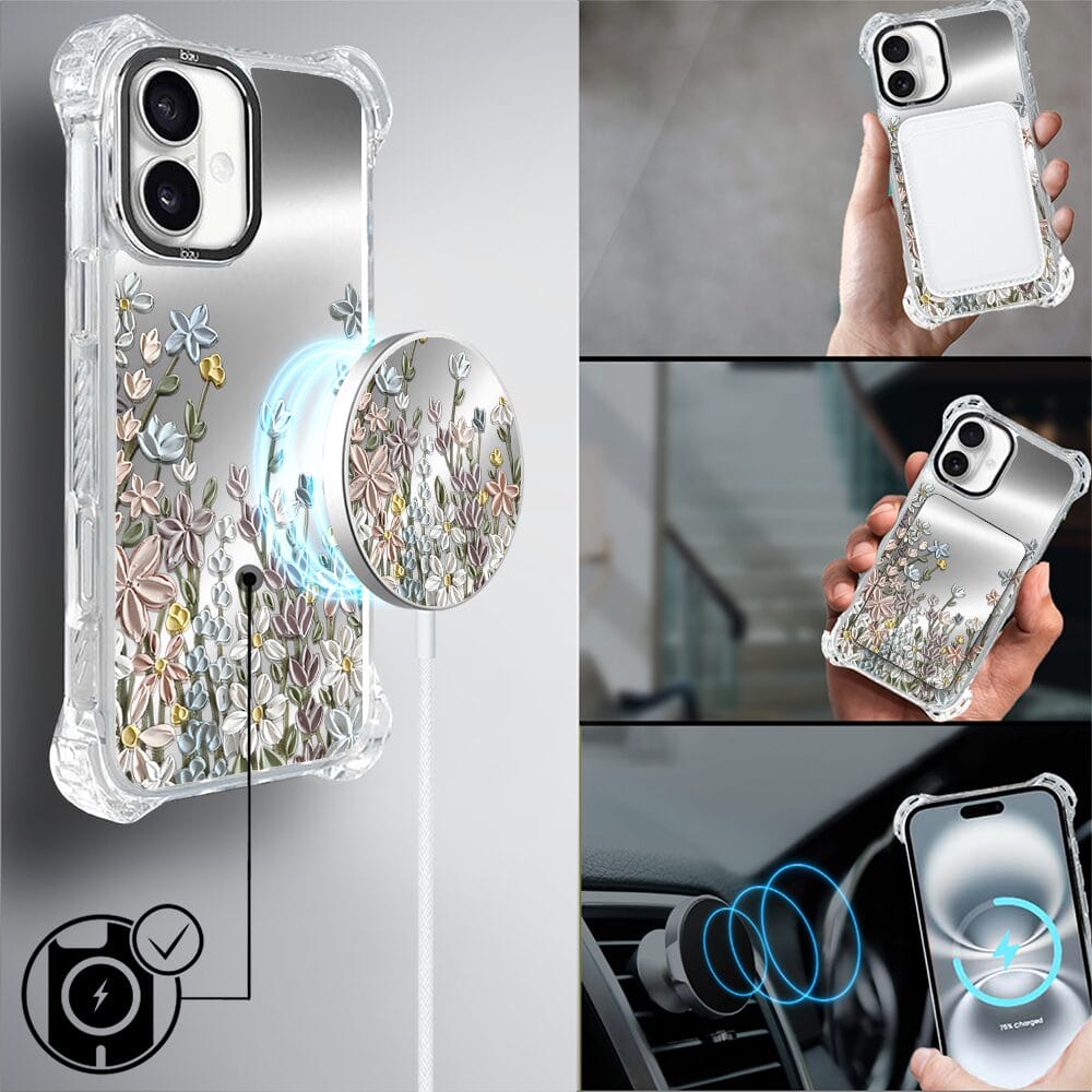 Etui do iPhone 16 Plus IBIZU DropGuard Ultra z MagSafe, Relief Garden, Wiosenna łąka