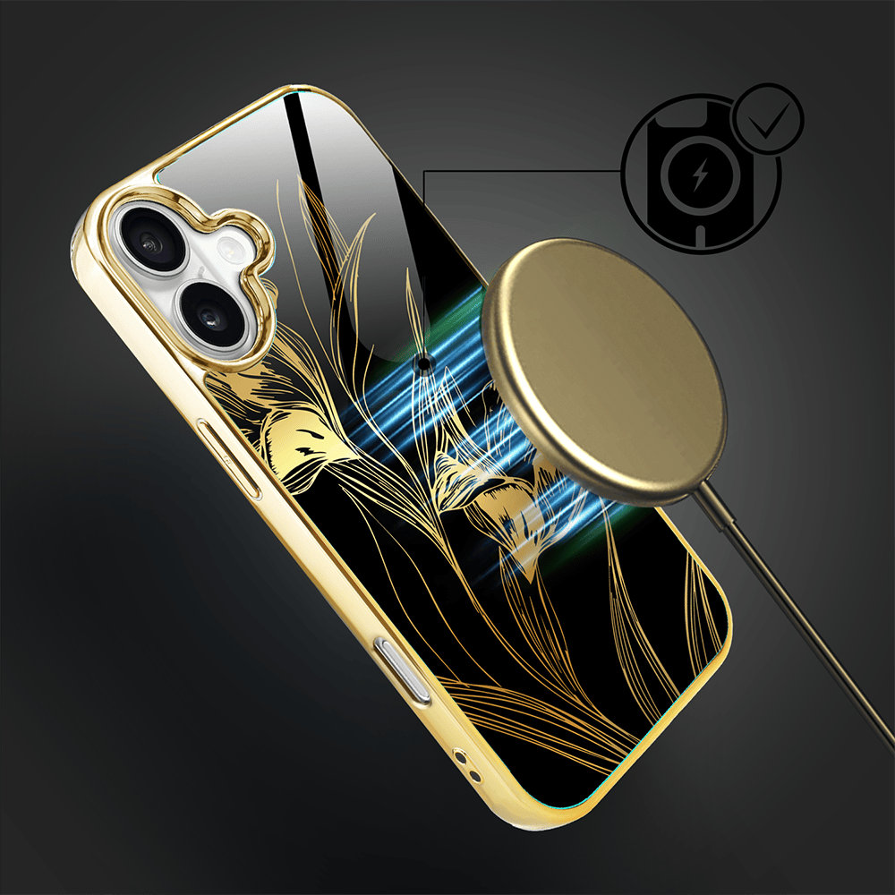 Etui do iPhone 16 Plus IBIZU Elite Glass z MagSafe Golden Midnight, Królewskie irysy, złote