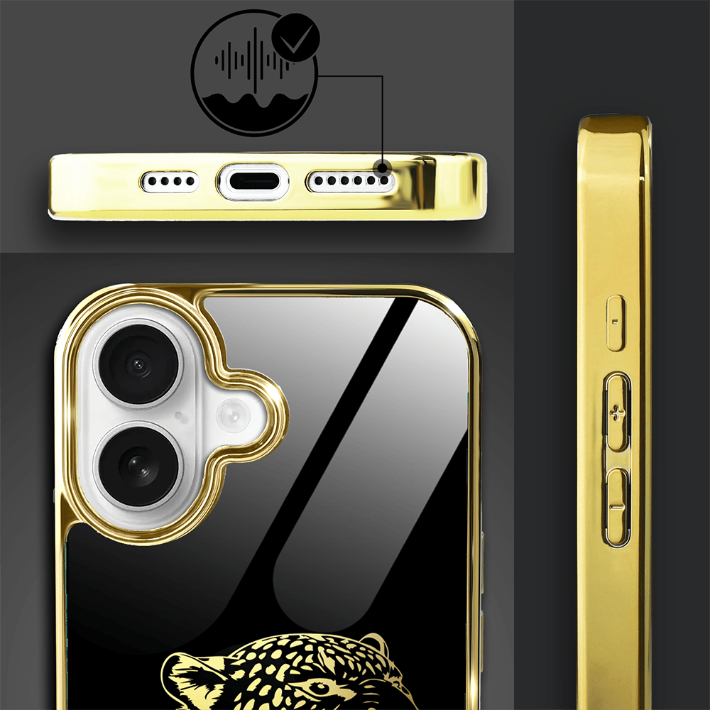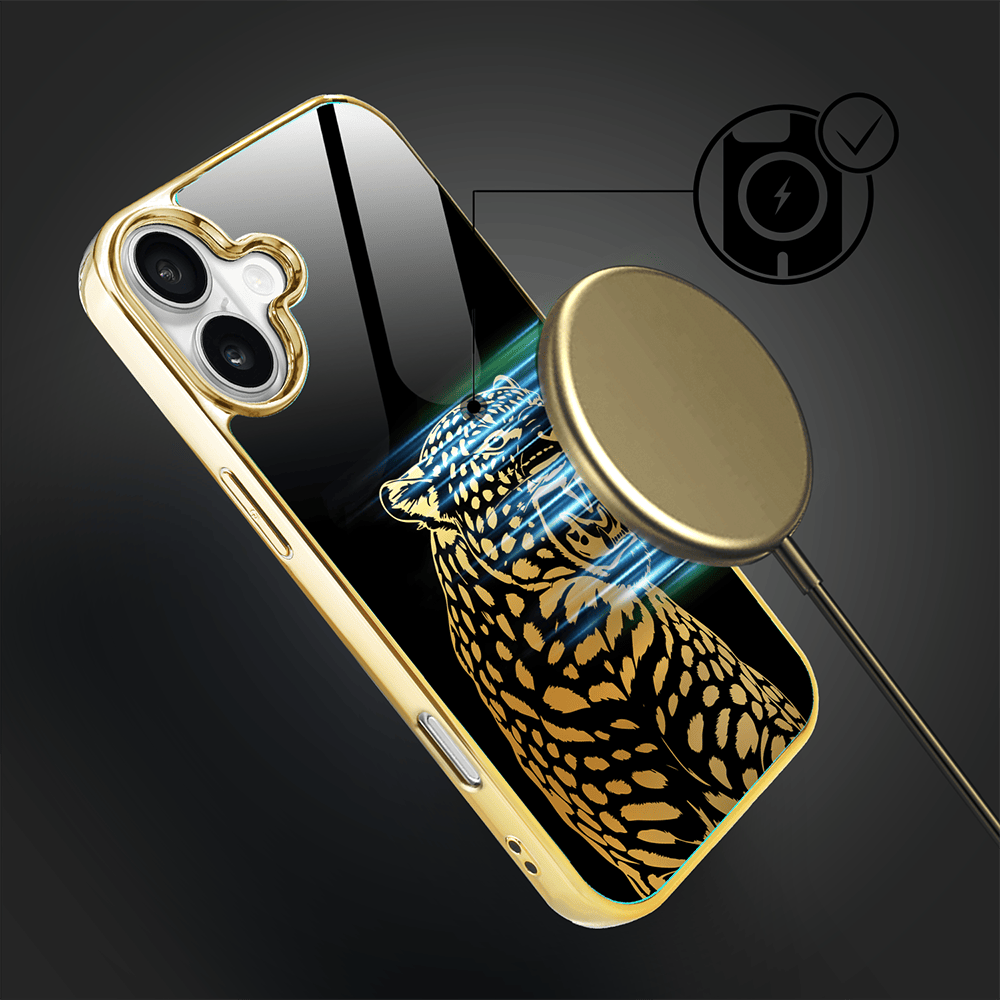 Etui do iPhone 16 Plus IBIZU Elite Glass z MagSafe Golden Midnight, Ryczący Jaguar, złote