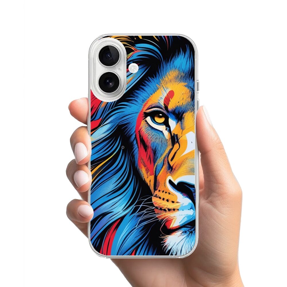 Etui do iPhone 16 Plus przeźroczyste, silikonowe Flexi, Dzika Mandala, Lwie spojrzenie