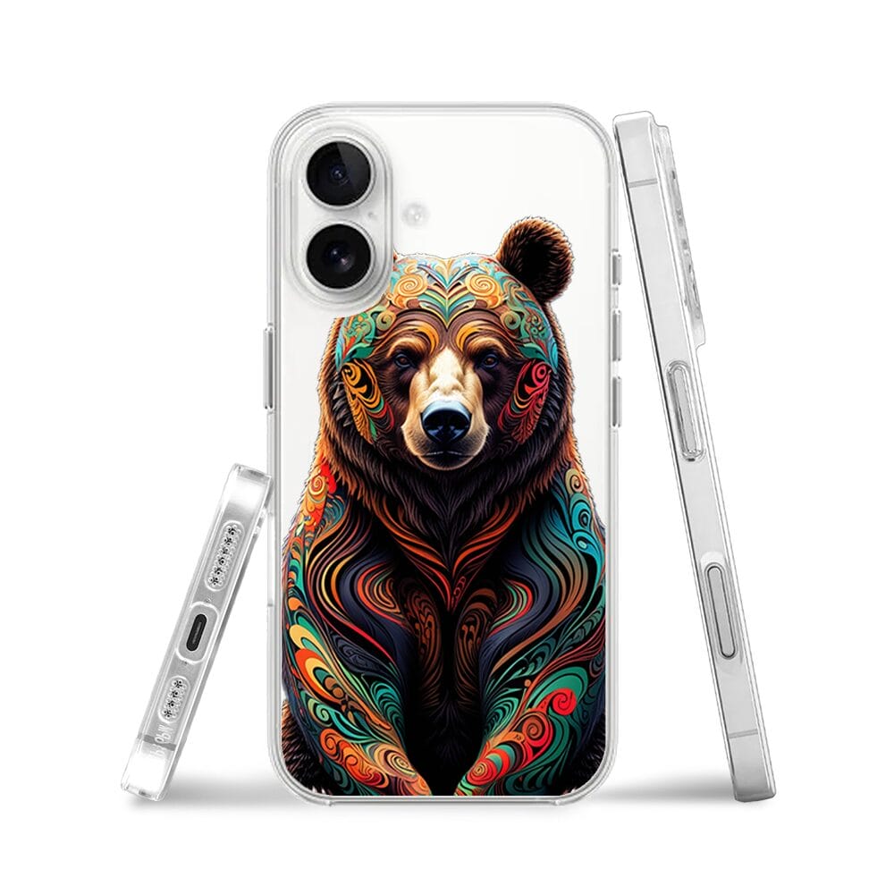 Etui do iPhone 16 Plus przeźroczyste, silikonowe Flexi, Dzika Mandala, Niedźwiedź