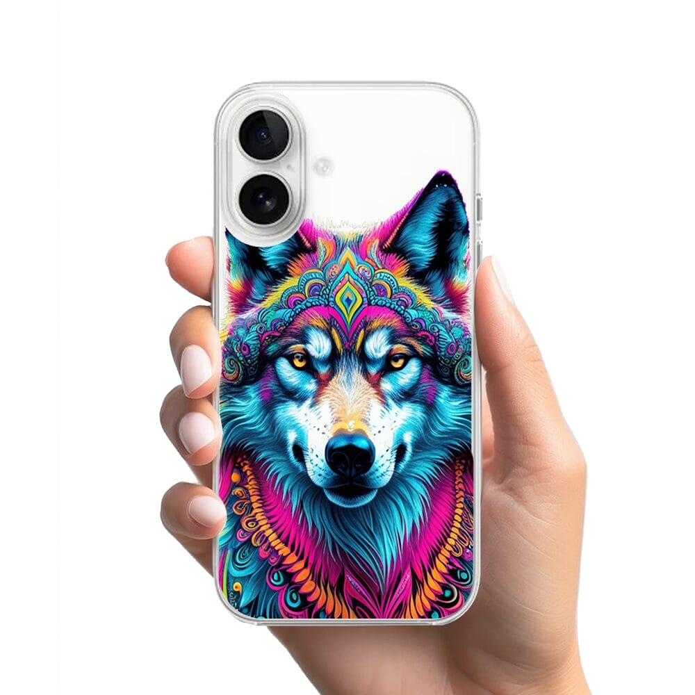 Etui do iPhone 16 Plus przeźroczyste, silikonowe Flexi, Dzika Mandala, Wilk