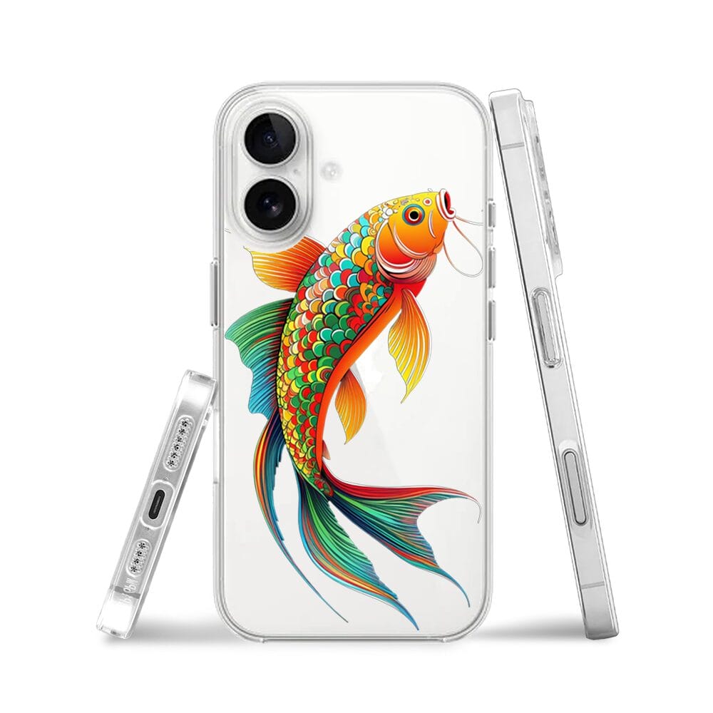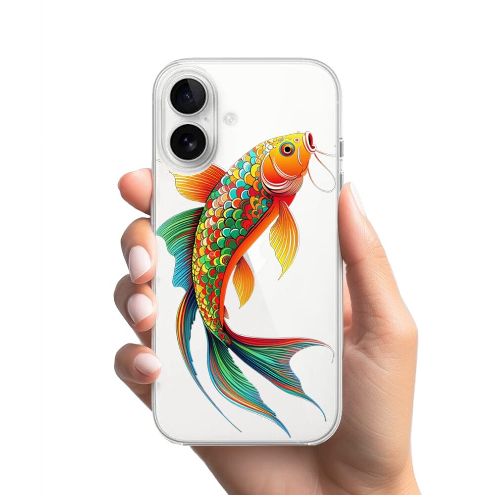 Etui do iPhone 16 Plus przeźroczyste, silikonowe Flexi, Dzika Mandala, Złota ryba