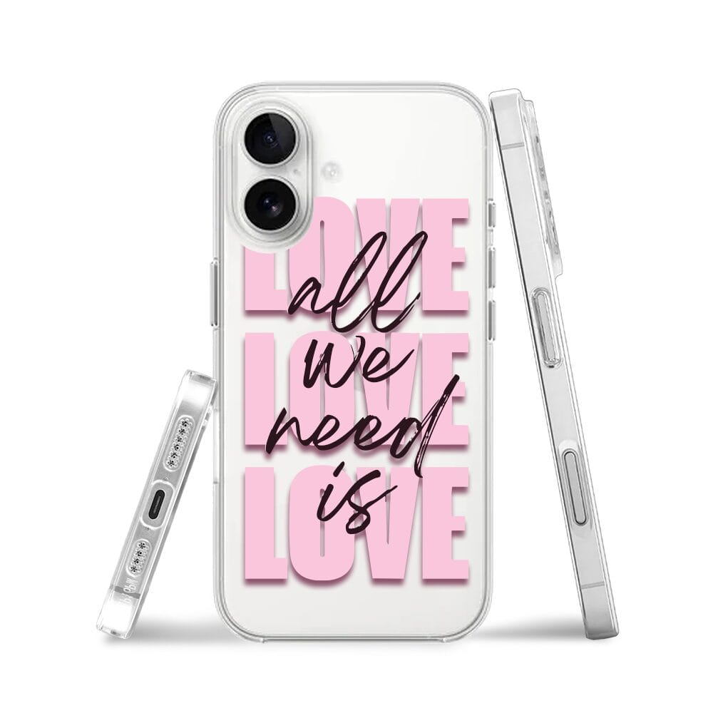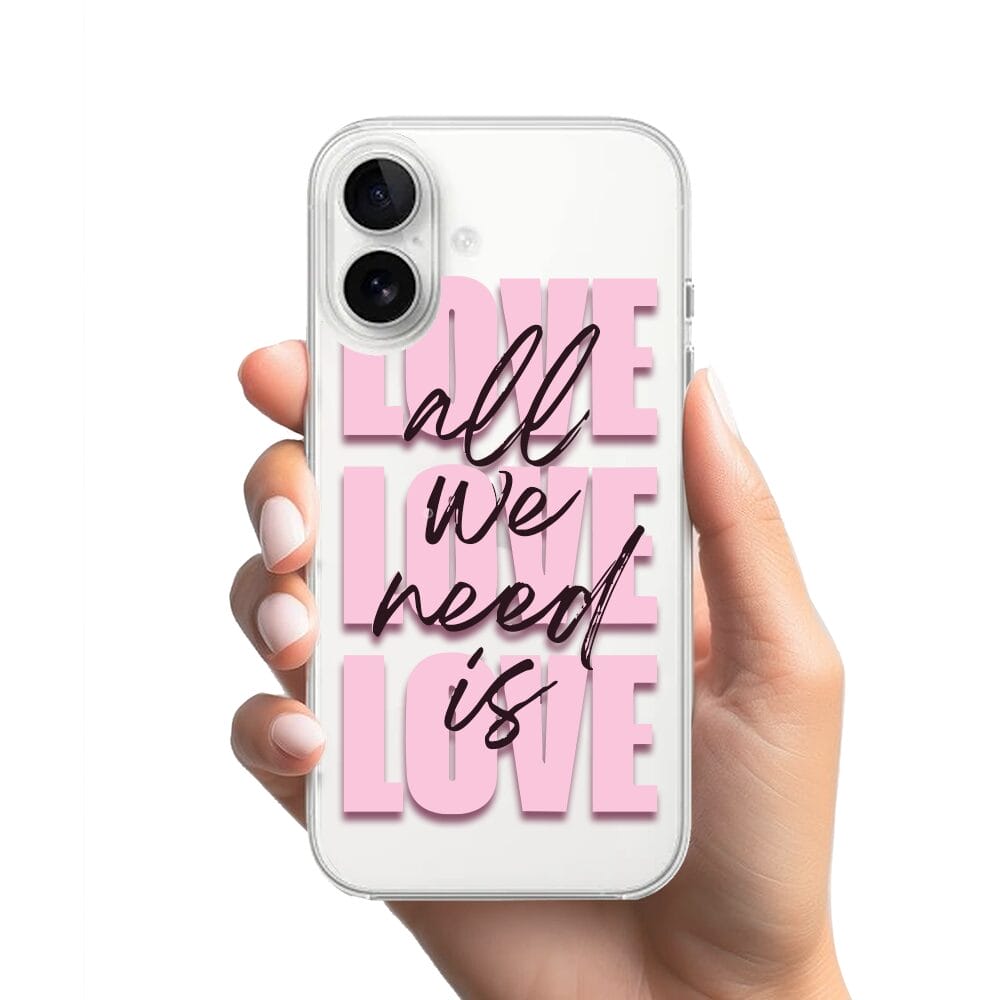 Etui do iPhone 16 Plus przeźroczyste, silikonowe Flexi, Positive Vibes, All We Need Is Love