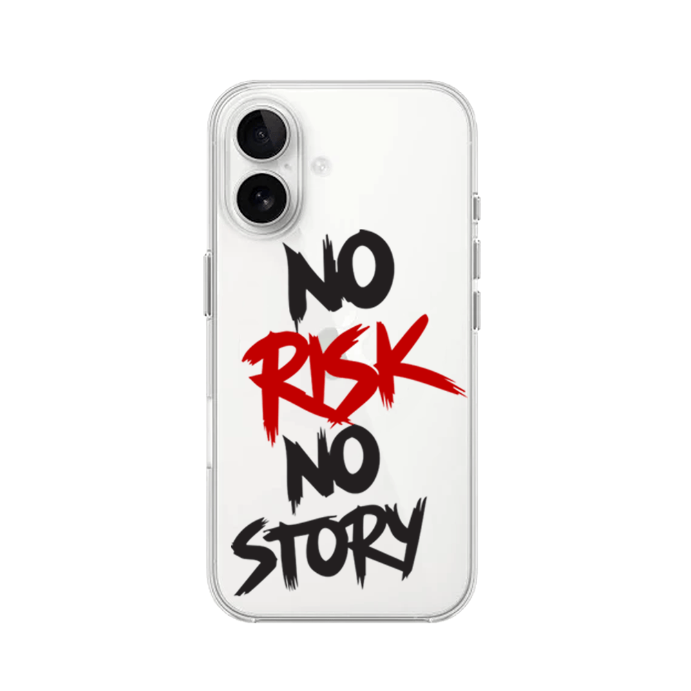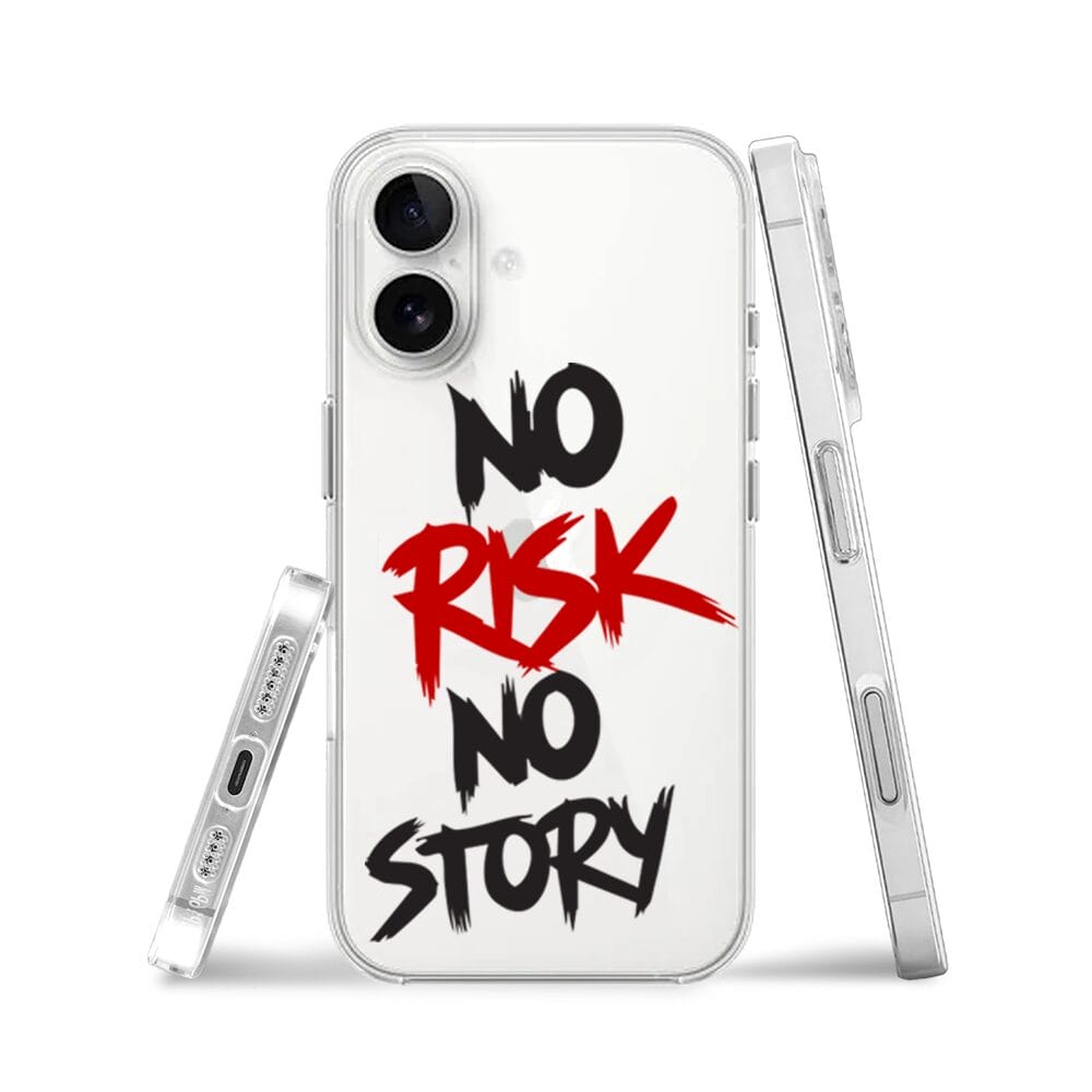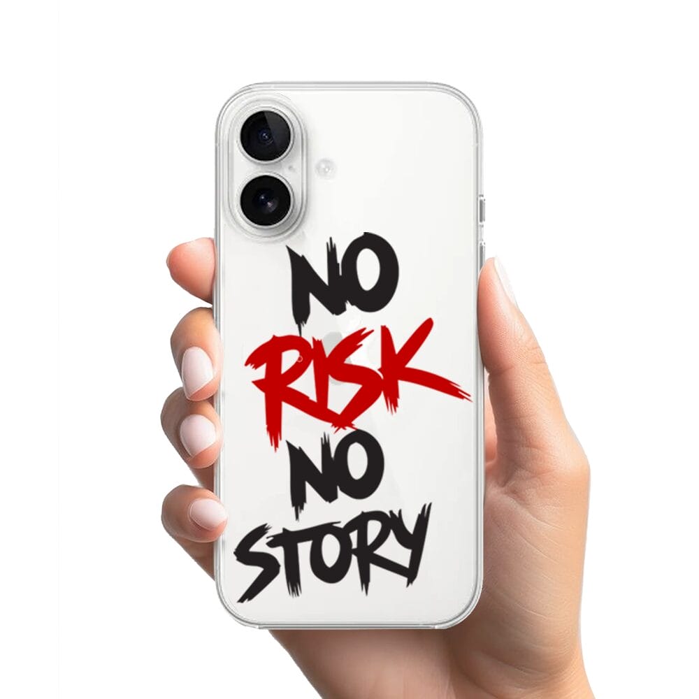Etui do iPhone 16 Plus przeźroczyste, silikonowe Flexi, Positive Vibes, No Risk No Story