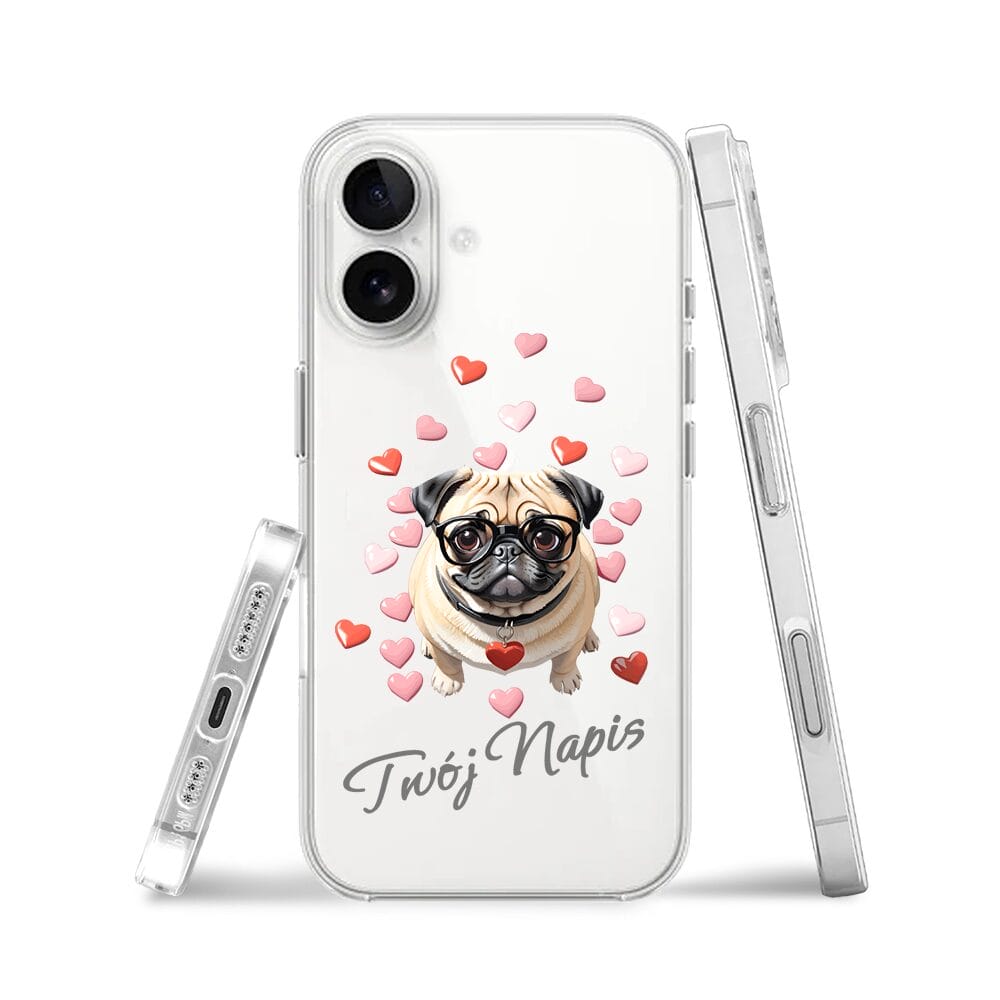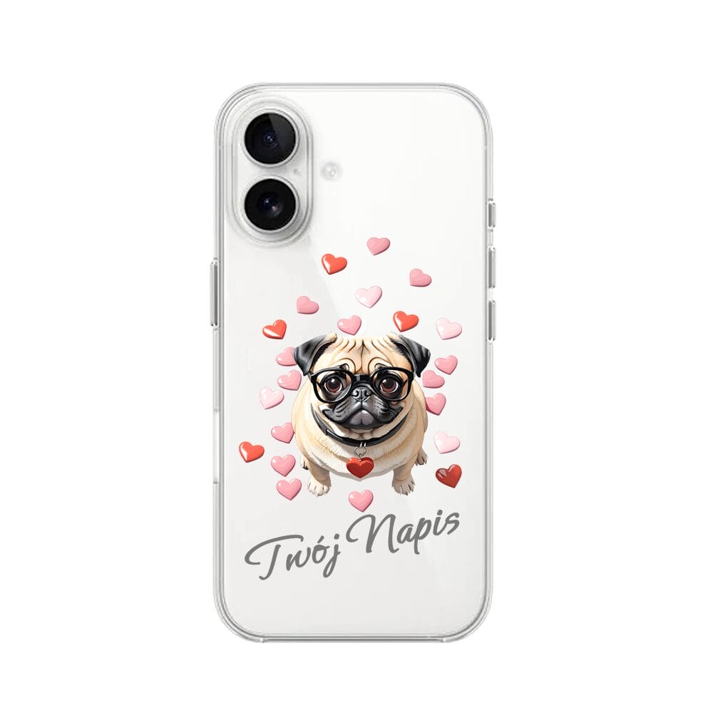 Etui do iPhone 16 Plus przeźroczyste, silikonowe Flexi, Puppy Love, pies rasy Mops