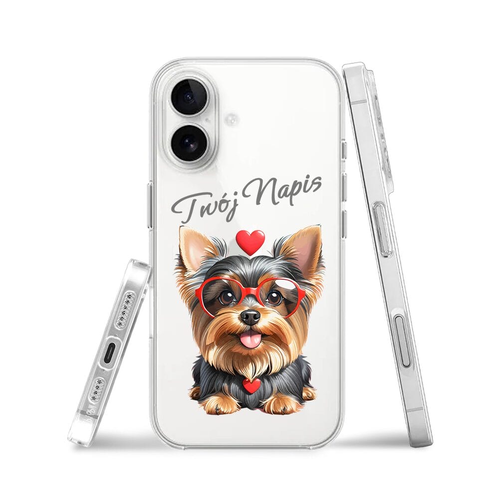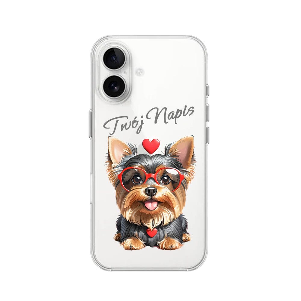 Etui do iPhone 16 Plus przeźroczyste, silikonowe Flexi, Puppy Love, pies rasy York