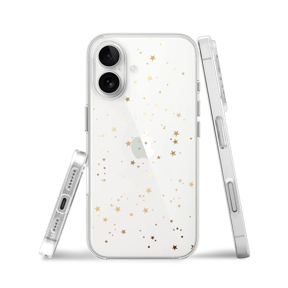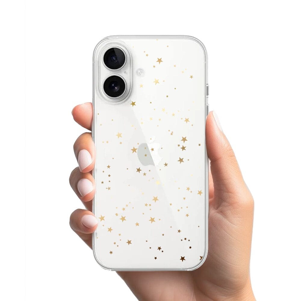 Etui do iPhone 16 Plus przeźroczyste, silikonowe Flexi, Zimowa magia, Złote gwiazdki