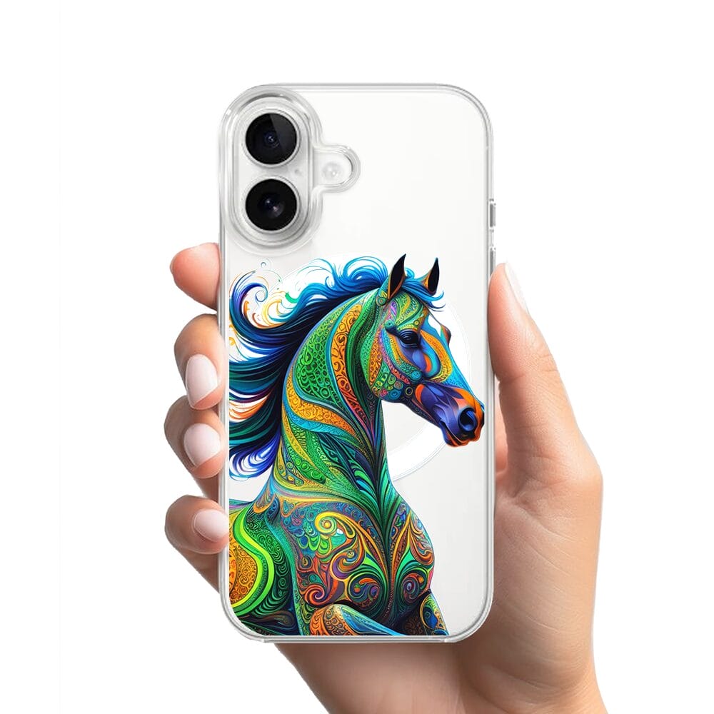 Etui do iPhone 16 Plus z MagSafe przeźroczyste, silikonowe Flexi, Dzika Mandala, Koń