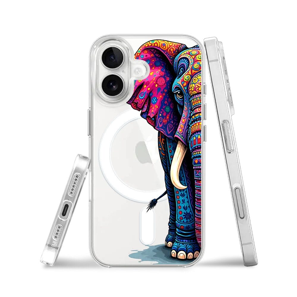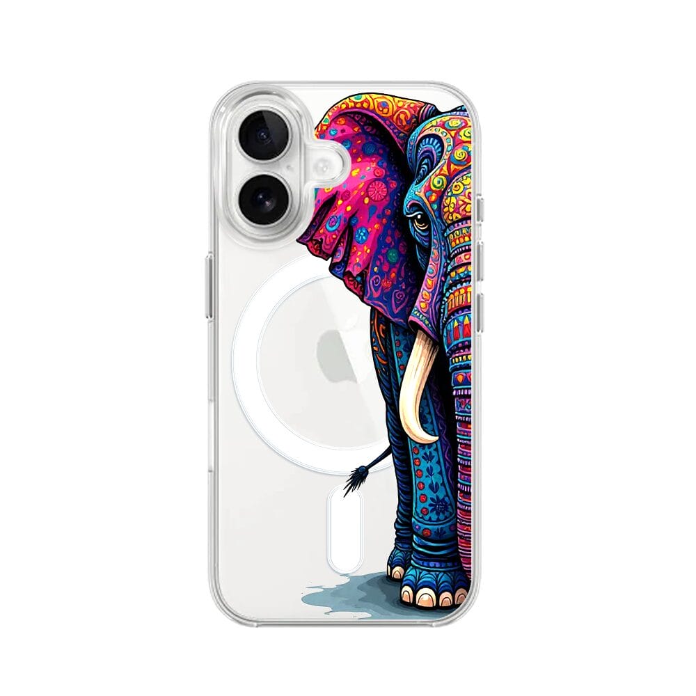 Etui do iPhone 16 Plus z MagSafe przeźroczyste, silikonowe Flexi, Dzika Mandala, Słoń