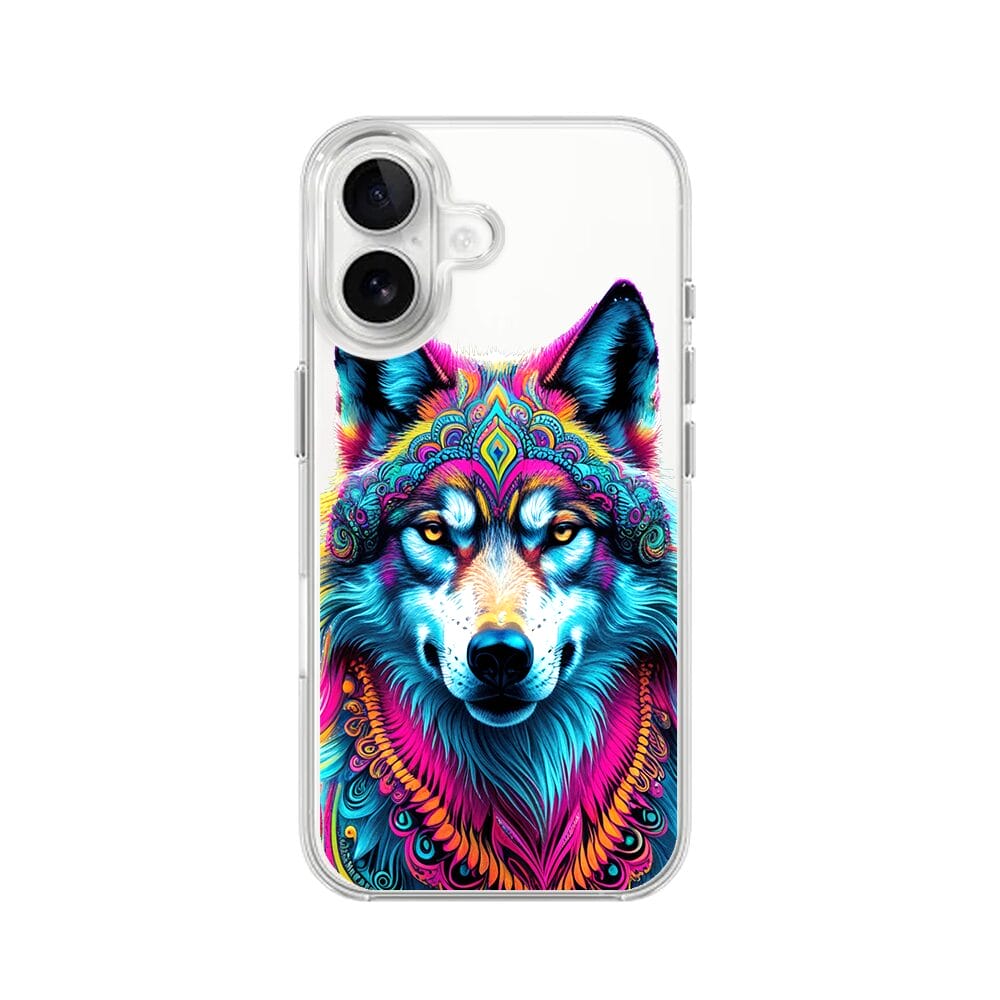 Etui do iPhone 16 Plus z MagSafe przeźroczyste, silikonowe Flexi, Dzika Mandala, Wilk