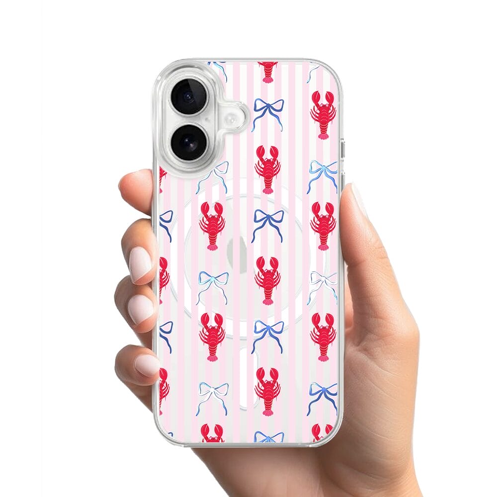Etui do iPhone 16 Plus z MagSafe przeźroczyste, silikonowe Flexi, krab i kokardki