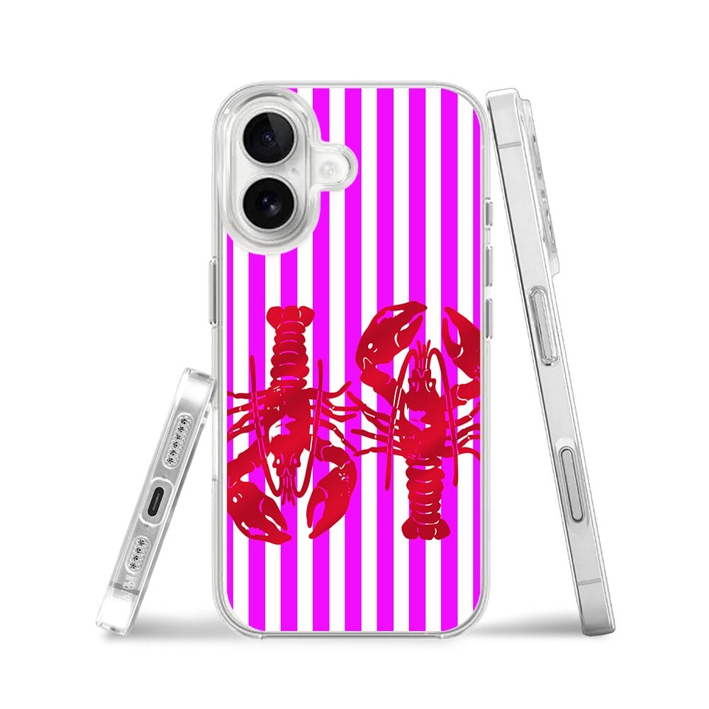 Etui do iPhone 16 Plus z MagSafe przeźroczyste, silikonowe Flexi, kraby z różowymi paskami