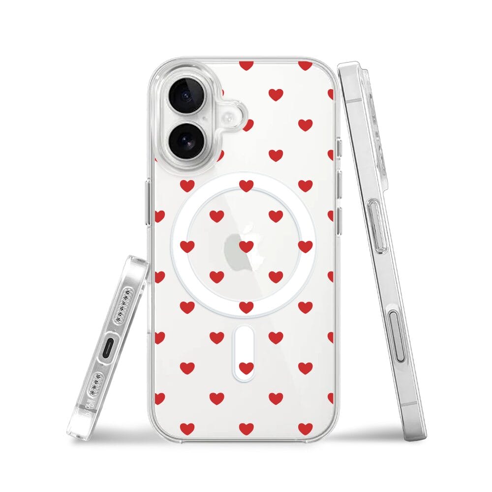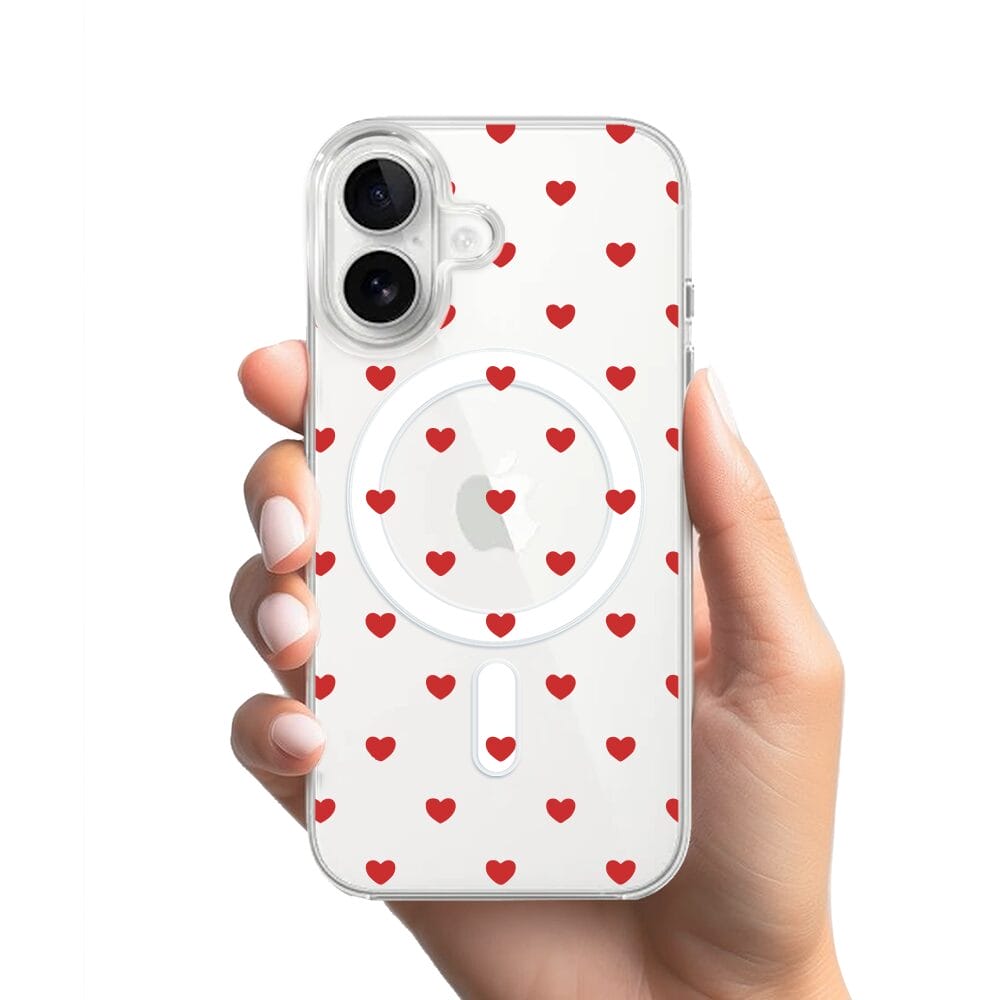 Etui do iPhone 16 Plus z MagSafe przeźroczyste, silikonowe Flexi, Mini Patterns, Serduszka