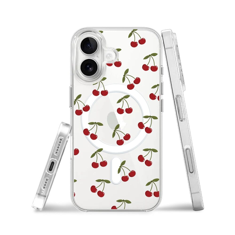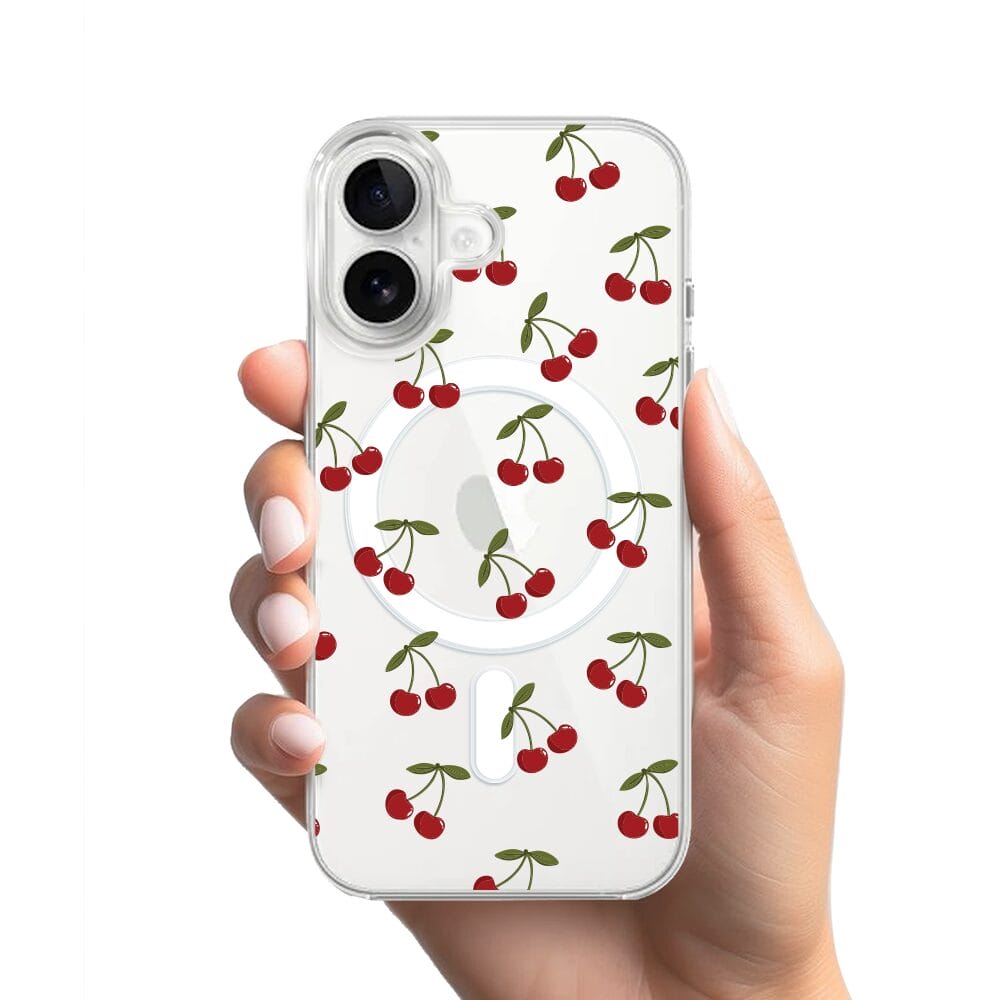 Etui do iPhone 16 Plus z MagSafe przeźroczyste, silikonowe Flexi, Mini Patterns, Wiśnie