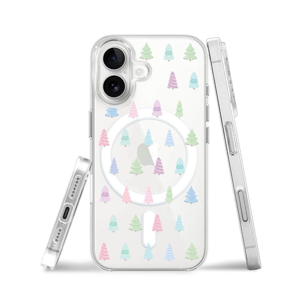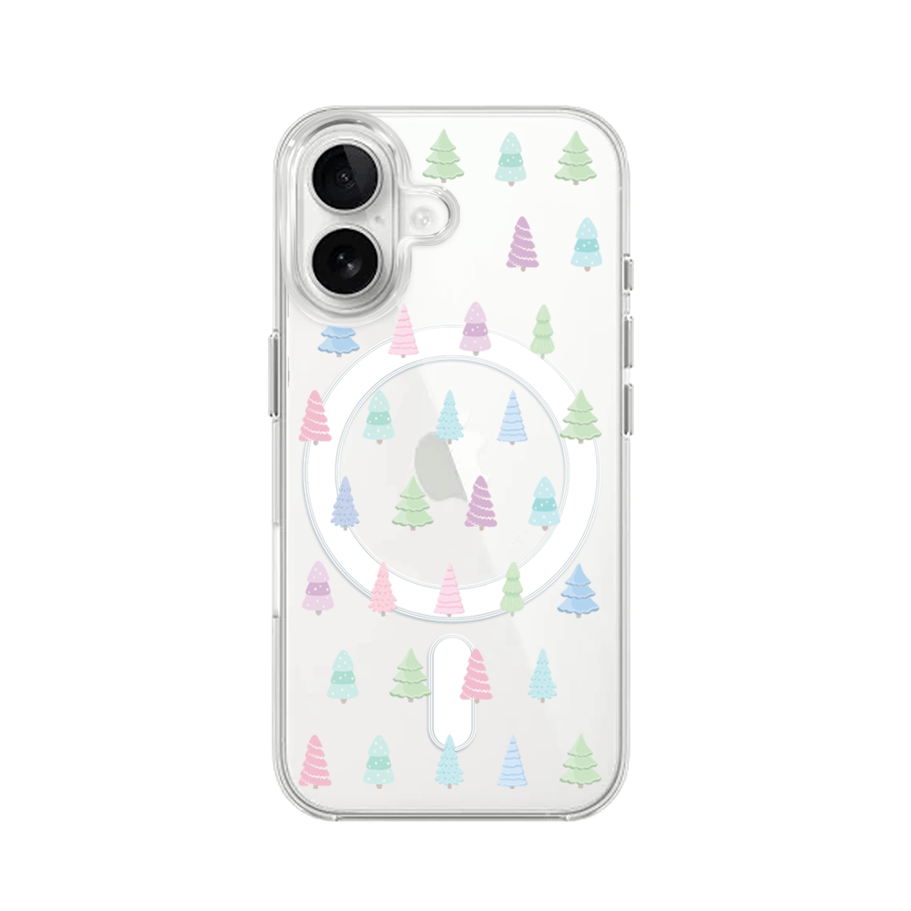 Etui do iPhone 16 Plus z MagSafe przeźroczyste, silikonowe Flexi, Pastelowe choinki