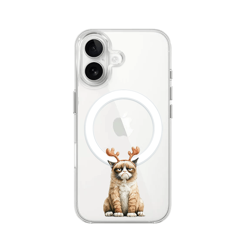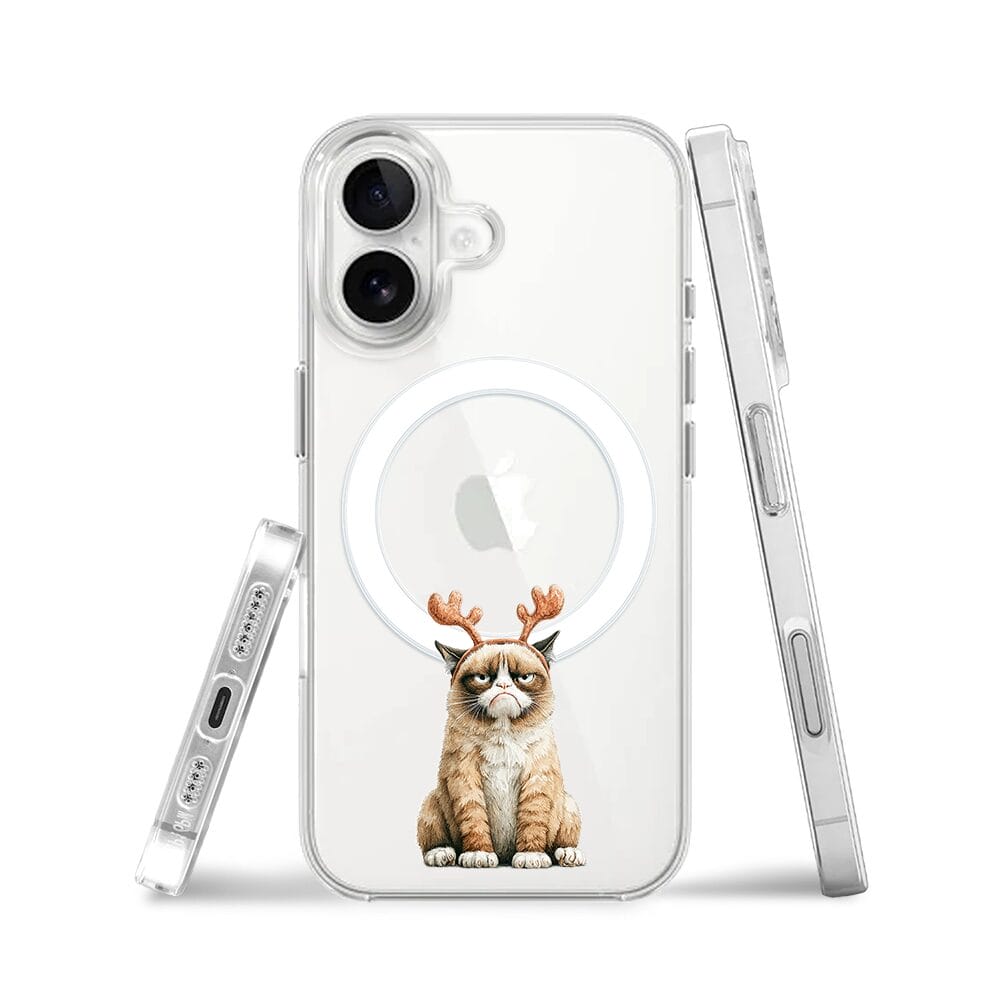 Etui do iPhone 16 Plus z MagSafe przeźroczyste, silikonowe Flexi, Przytulne święta, Kot który nie chciał być reniferem