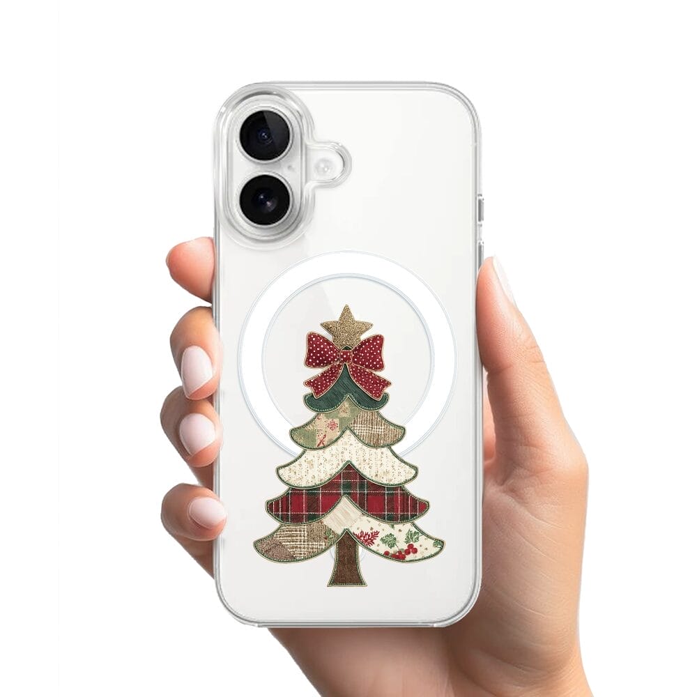 Etui do iPhone 16 Plus z MagSafe przeźroczyste, silikonowe Flexi, Przytulne święta, Kraciasta choinka