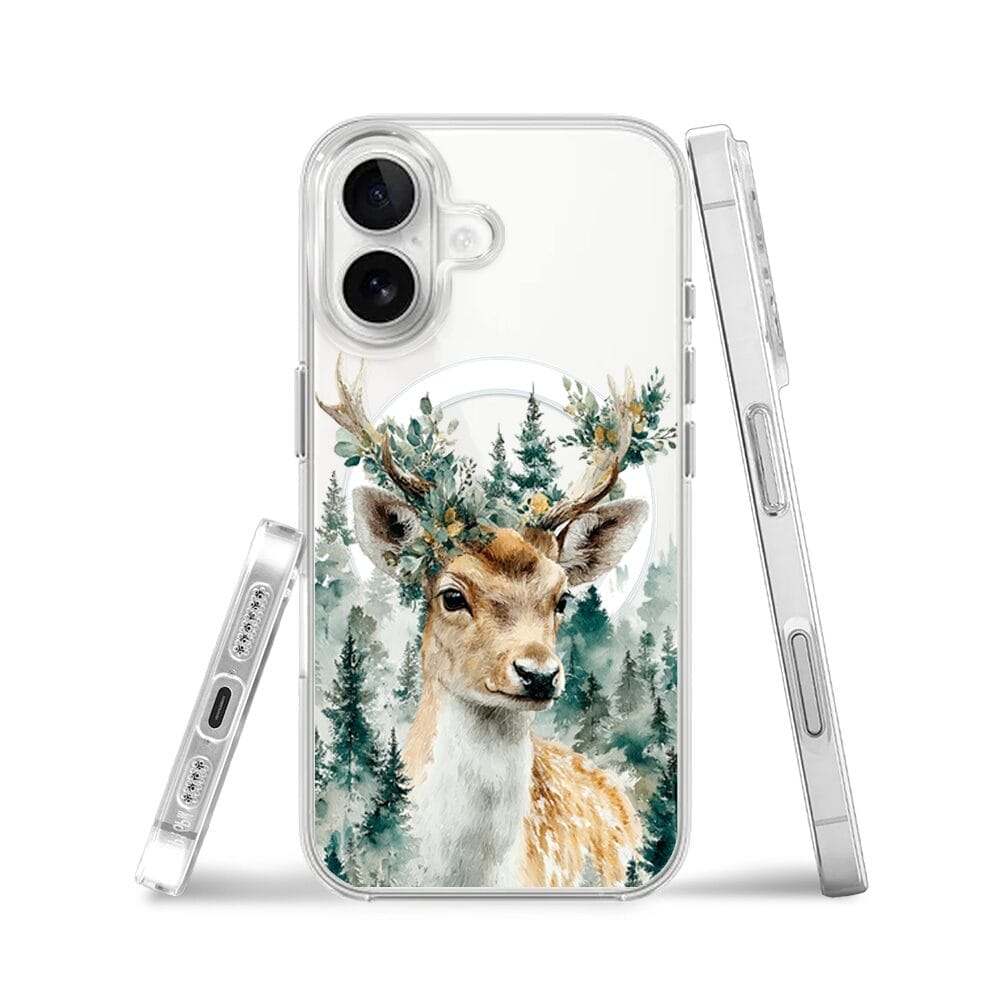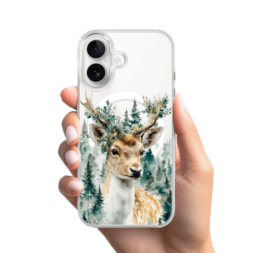 Etui do iPhone 16 Plus z MagSafe przeźroczyste, silikonowe Flexi, Przytulne święta, Leśny jelonek