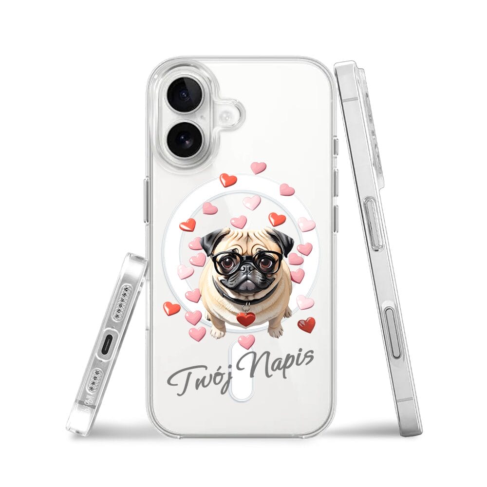 Etui do iPhone 16 Plus z MagSafe przeźroczyste, silikonowe Flexi, Puppy Love, pies rasy Mops