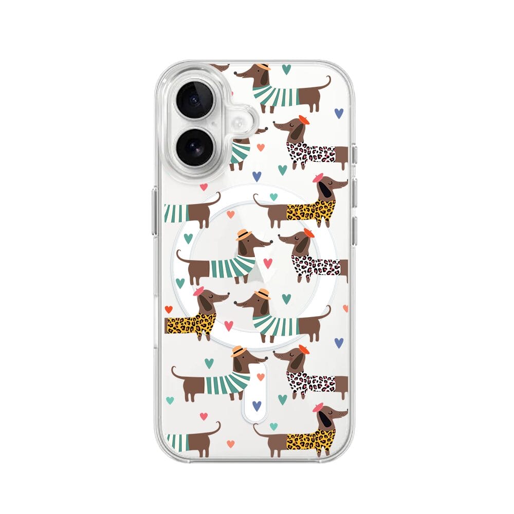 Etui do iPhone 16 Plus z MagSafe przeźroczyste, silikonowe Flexi, zakochane jamniki