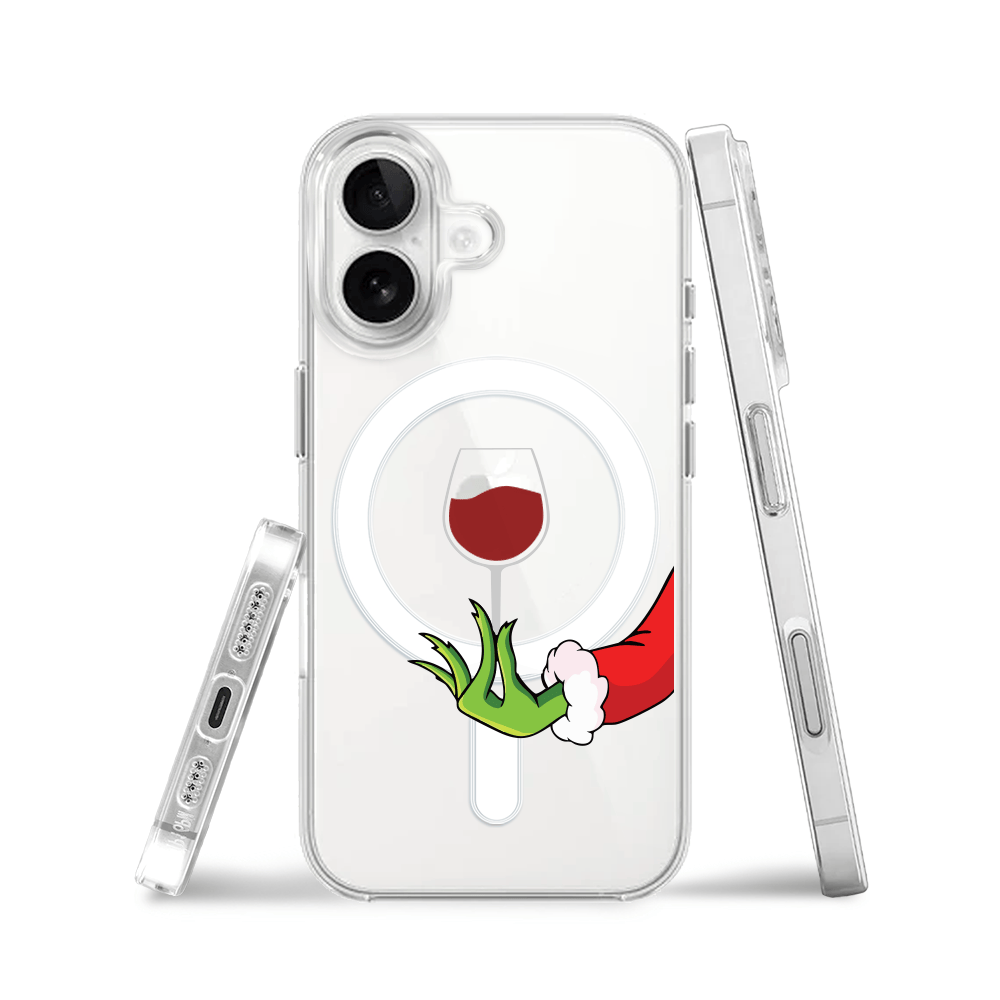Etui do iPhone 16 Plus z MagSafe przeźroczyste, silikonowe Flexi, Zielony psotnik z lampką wina