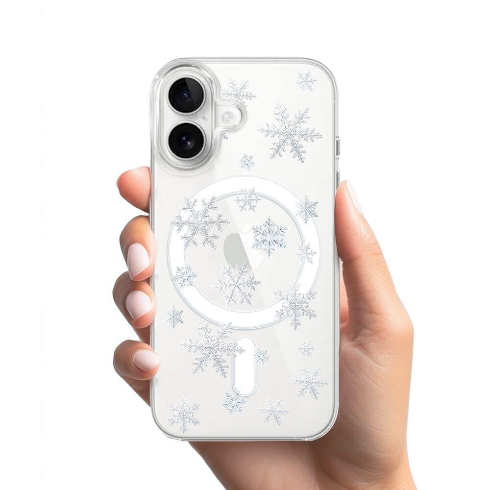 Etui do iPhone 16 Plus z MagSafe przeźroczyste, silikonowe Flexi, Zimowa magia, Delikatne płatki śniegu