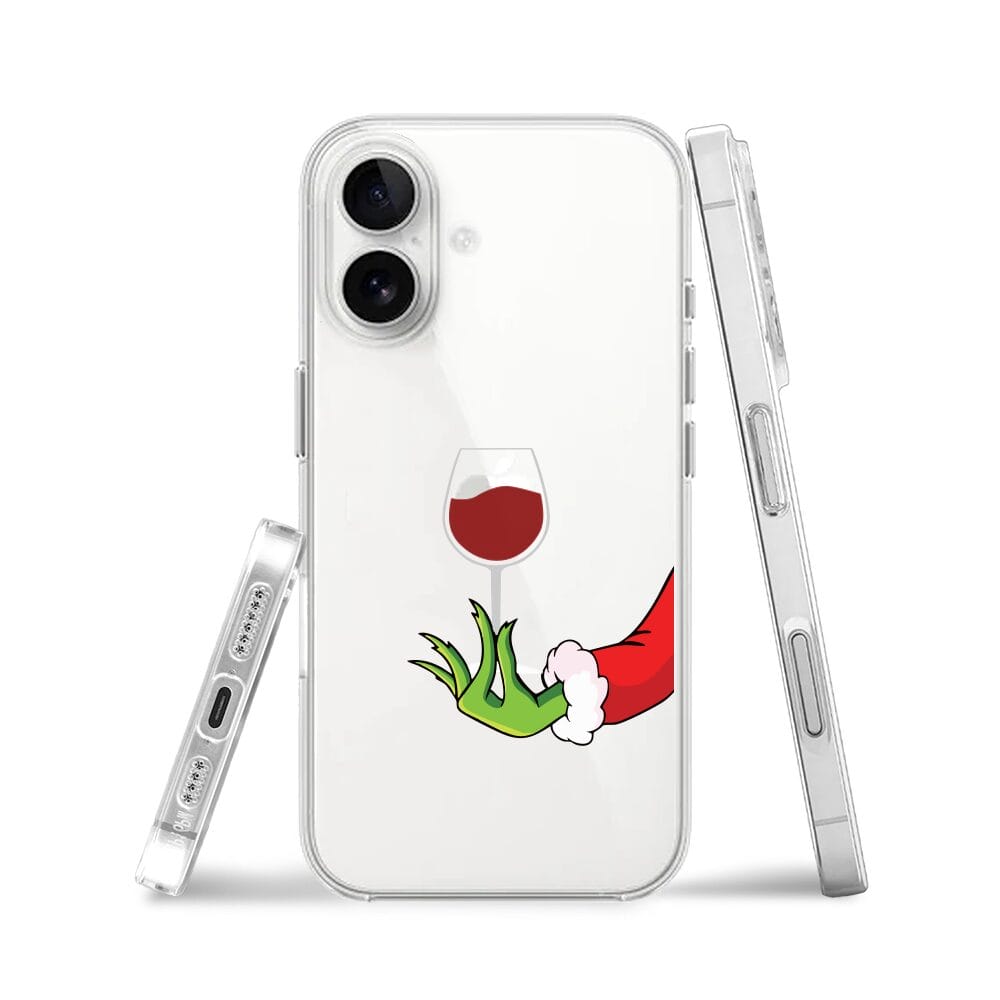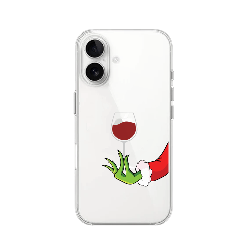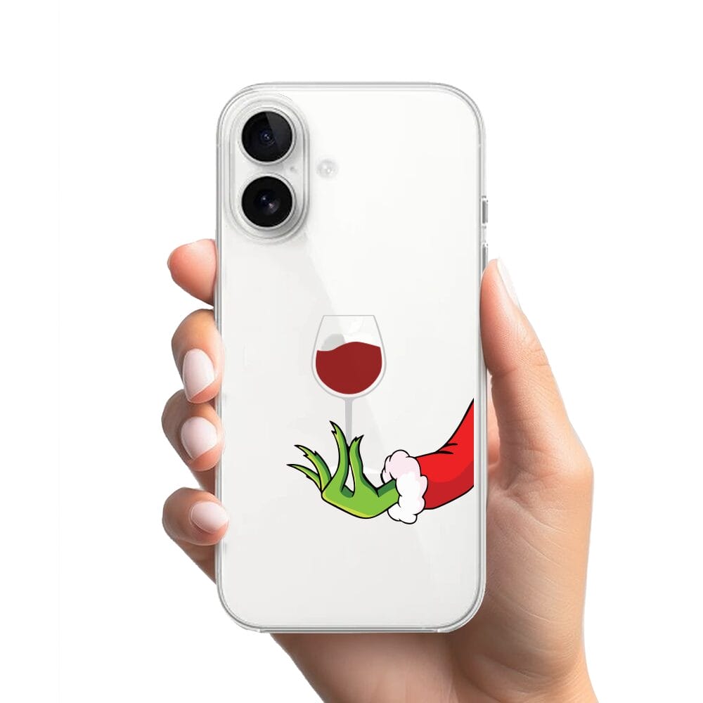Etui do iPhone 16 Plus, zielony psotnik z lampką wina, przeźroczyste