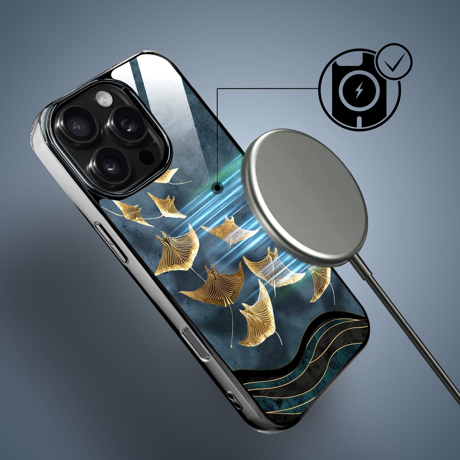 Etui do iPhone 16 Pro IBIZU Elite Glass z MagSafe Magia Azji, Morze, Lot płaszczek, czarne