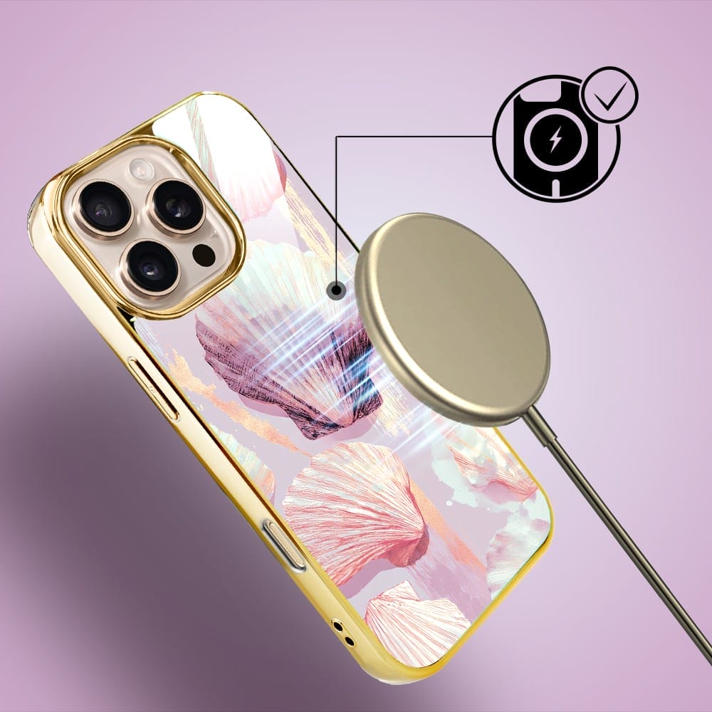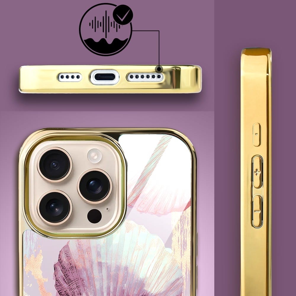 Etui do iPhone 16 Pro IBIZU Elite Glass z MagSafe Morze, Perłowa Muszla, złote