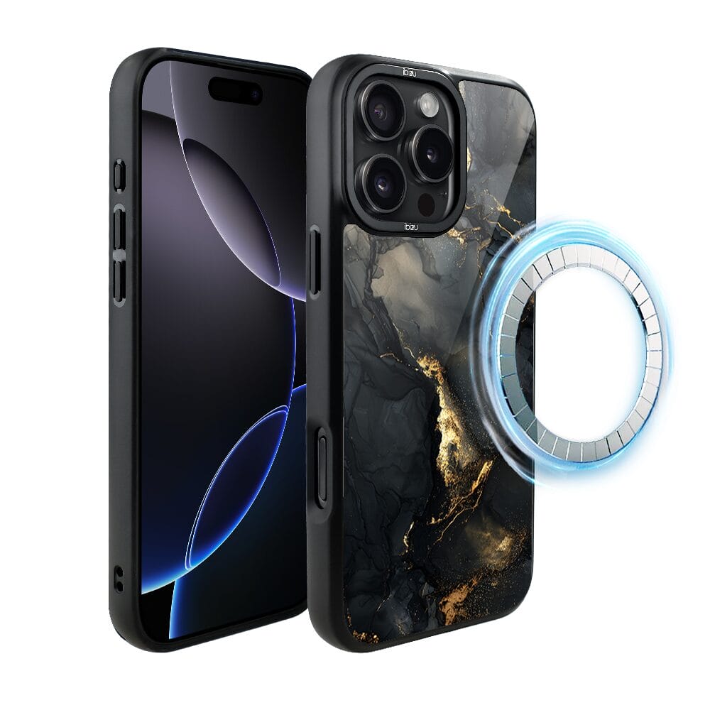 Etui do iPhone 16 Pro IBIZU DropGuard Matt z MagSafe, Ethereal Essence, Czarny diament ze złotem