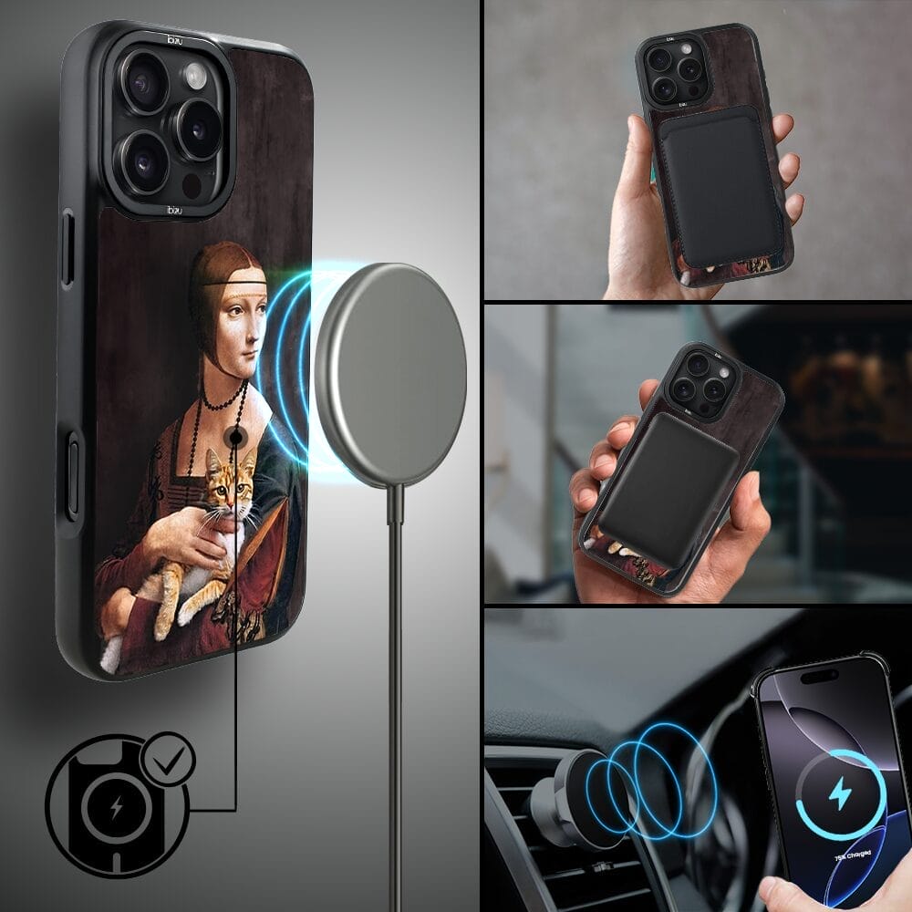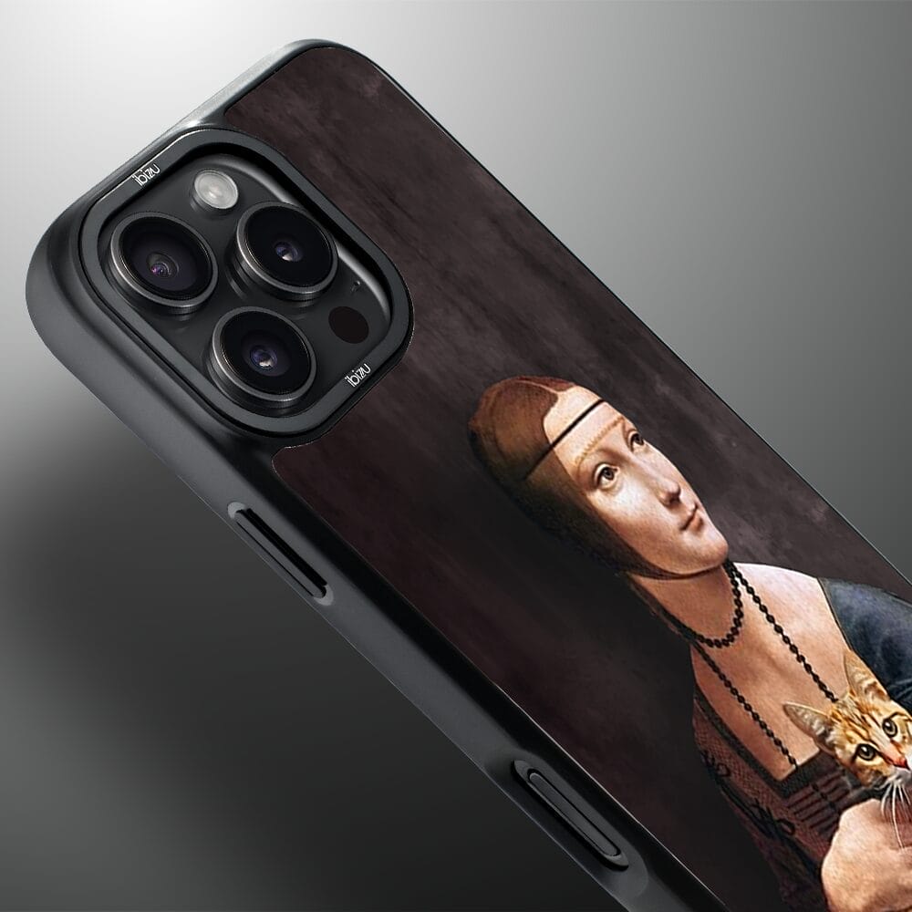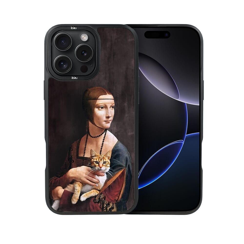 Etui do iPhone 16 Pro IBIZU DropGuard Matt z MagSafe, Leonardo Da Vinci, dama z kotem