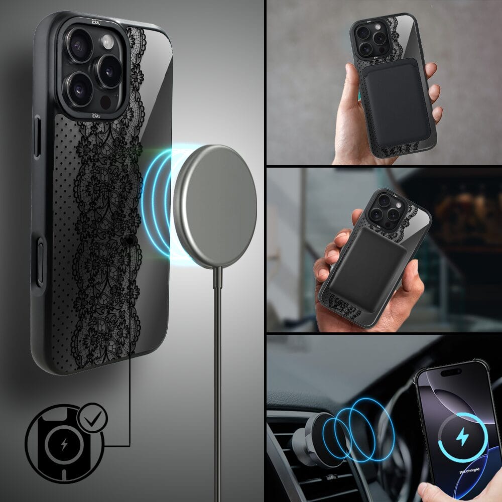 Etui do iPhone 16 Pro IBIZU DropGuard Matt z MagSafe, Midnight, Ornamentowa koronka